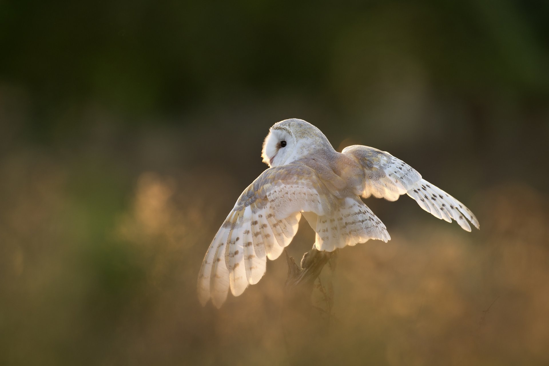 Búho blanco agita sus alas bajando al Suelo - fondos de pantalla