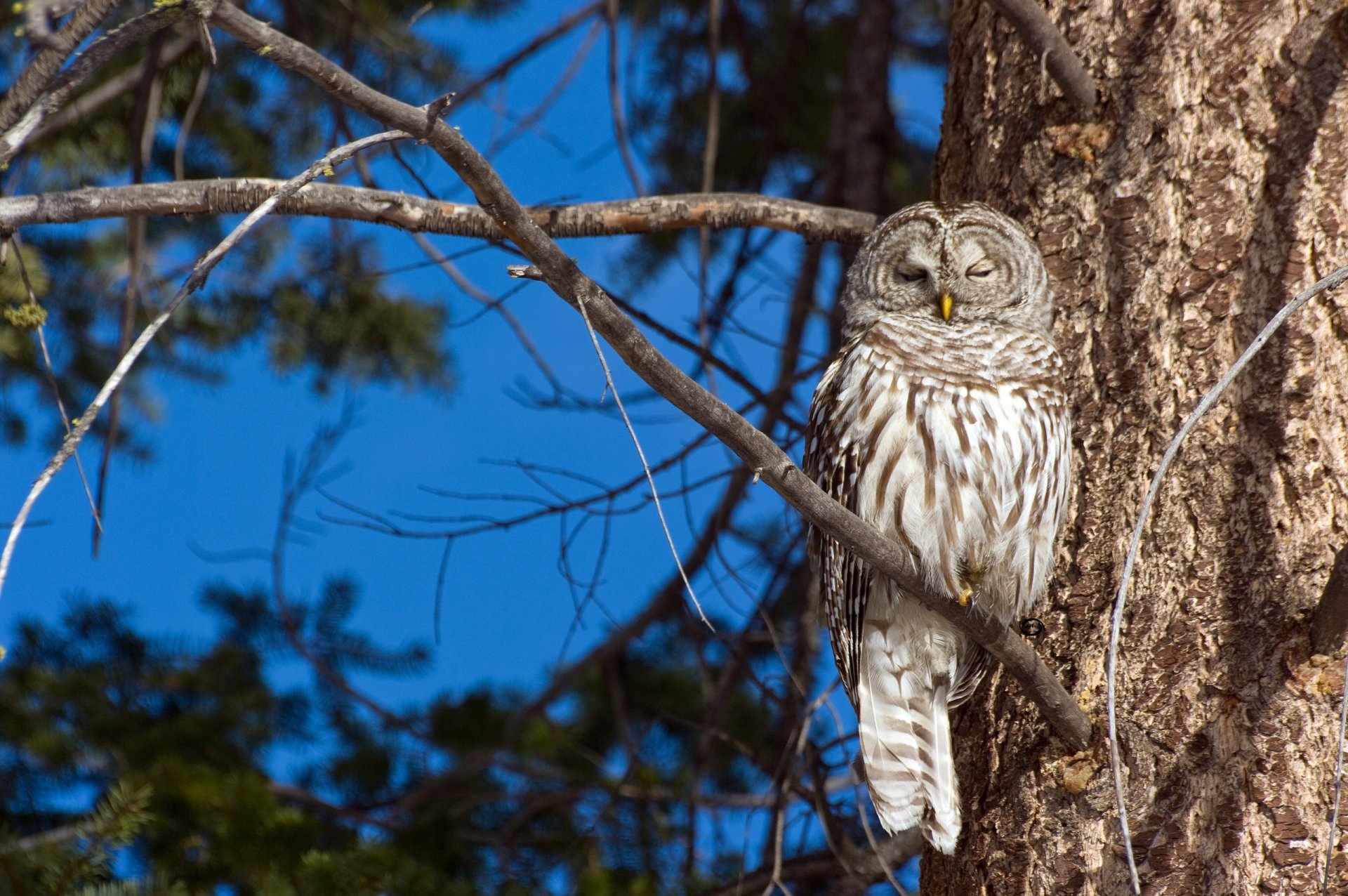 Búho sentado en una rama de árbol durante el día - fondos de pantalla