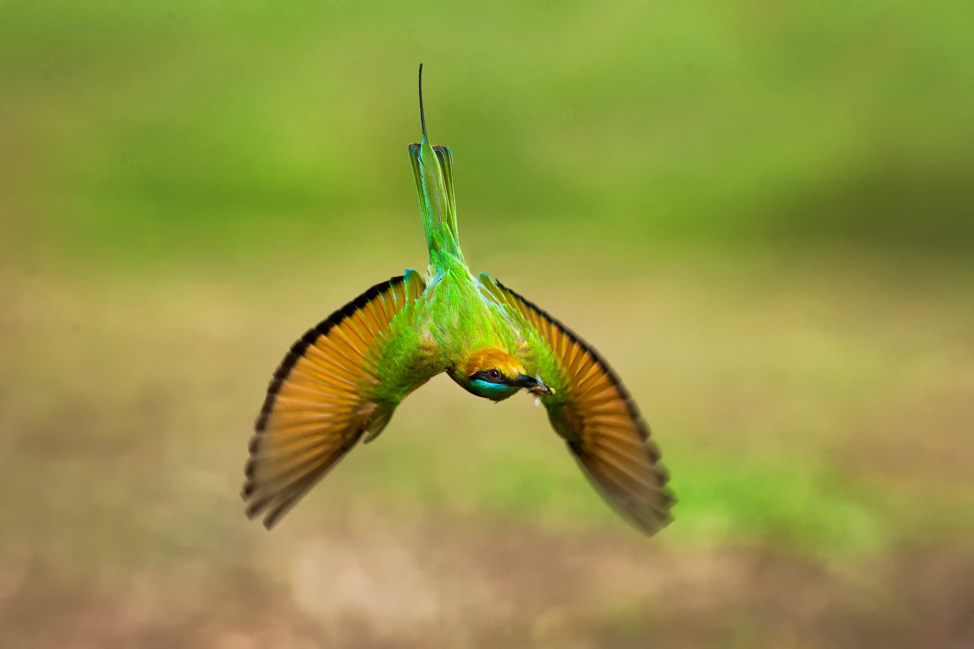 En la foto borrosa verde inusual pájaro - fondos de pantalla