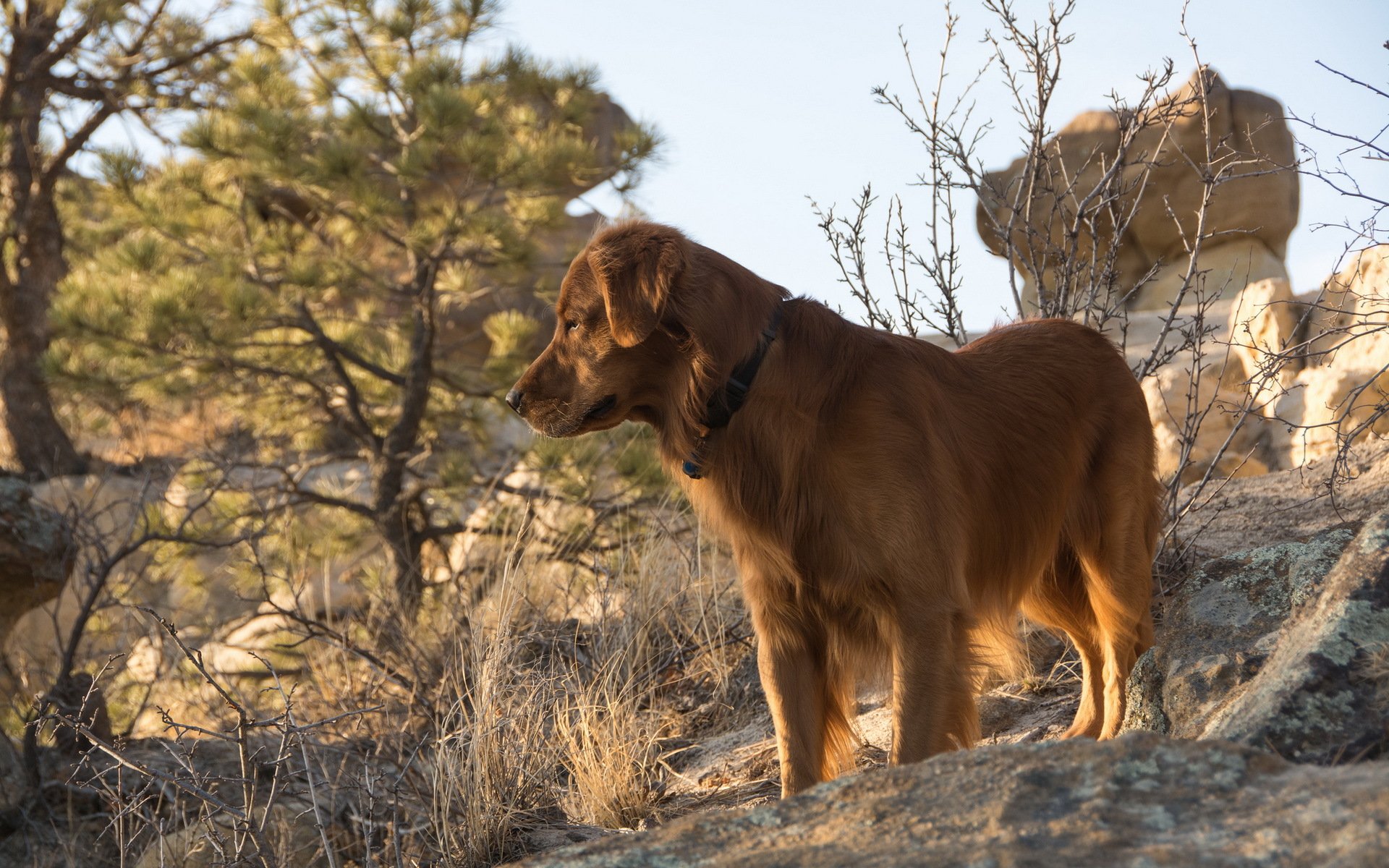 Perro triste en un paseo por las montañas - fondos de Escritorio