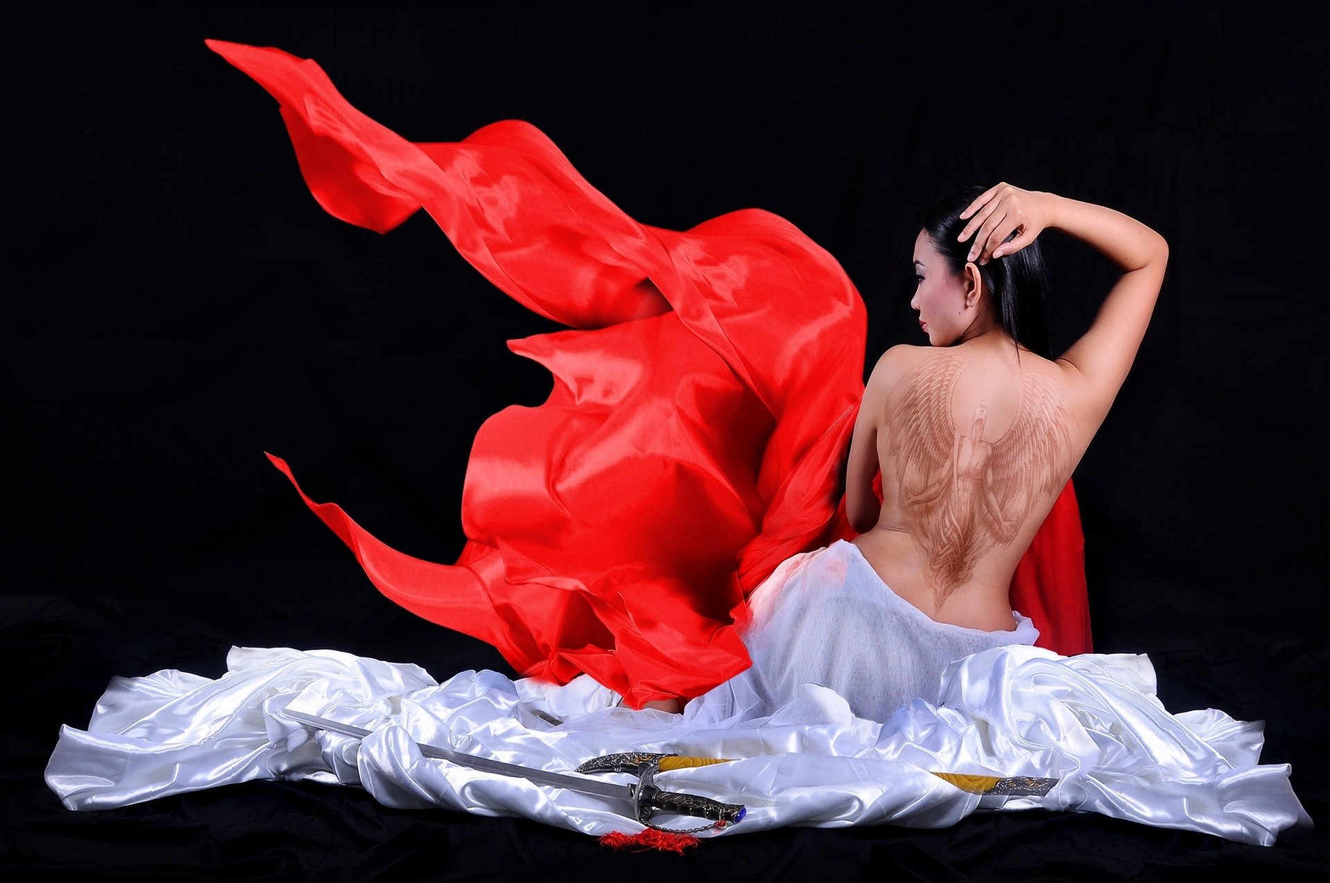 Etiquetas:chica, asiático, tatuaje, ángel, alas, mano, perfil, espada, fondo negro