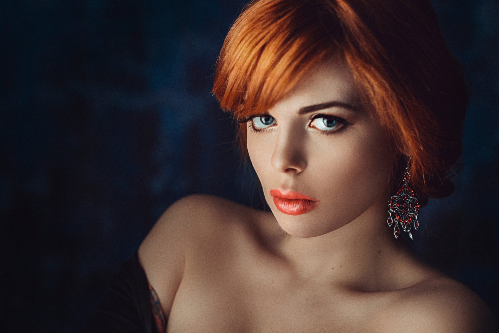 Retrato de una chica pelirroja con escote - fondos de Escritorio