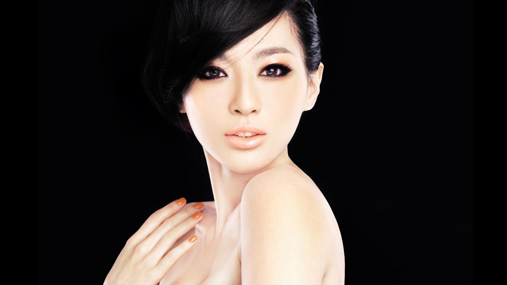 Etiquetas:chica, asiático, modelo, cara, mirada, ojos, pelo, mano, fondo negro