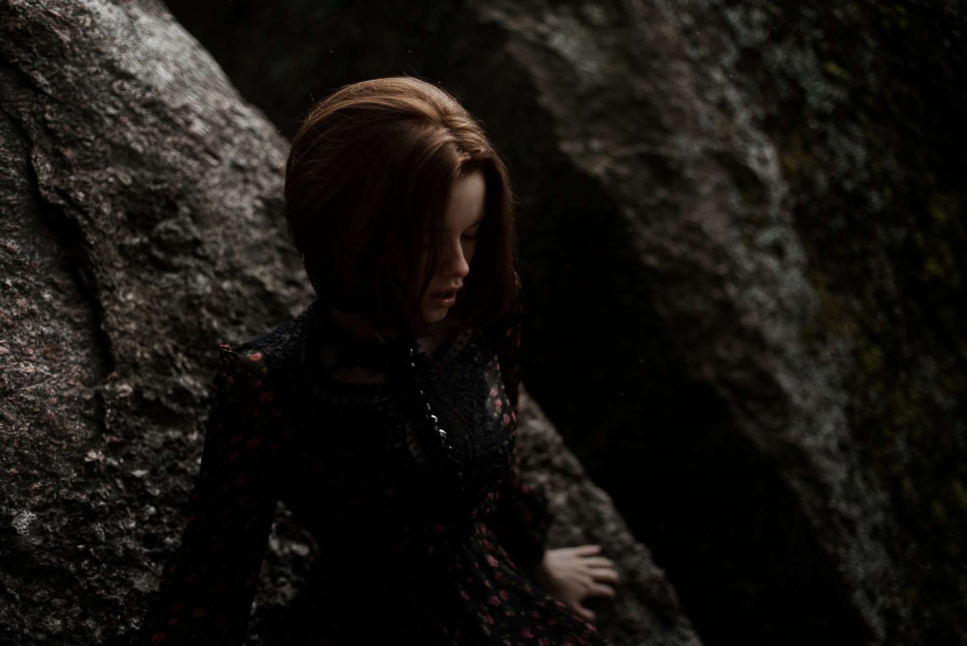 Con las manos apoyadas en una gran piedra chica - fondos de pantalla