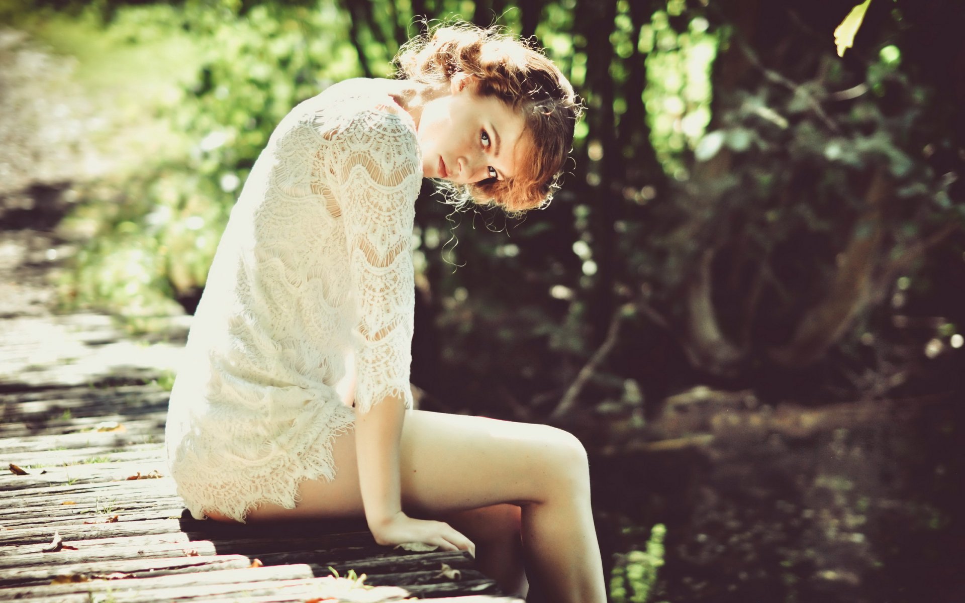 Hermosa chica descansando en el puente - fondos de pantalla