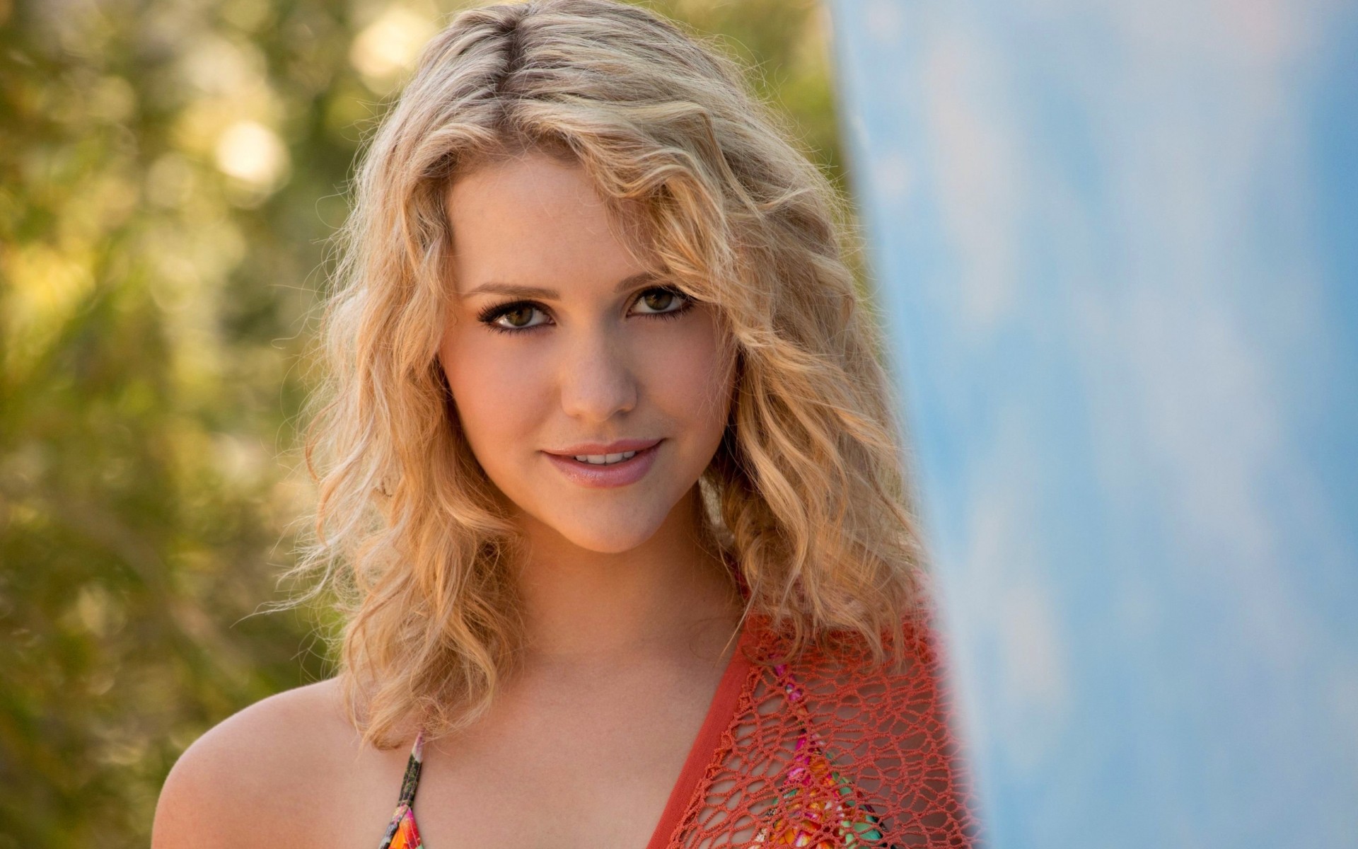 Rubia en el fondo de la vegetación. Sonrisa - fondos de pantalla