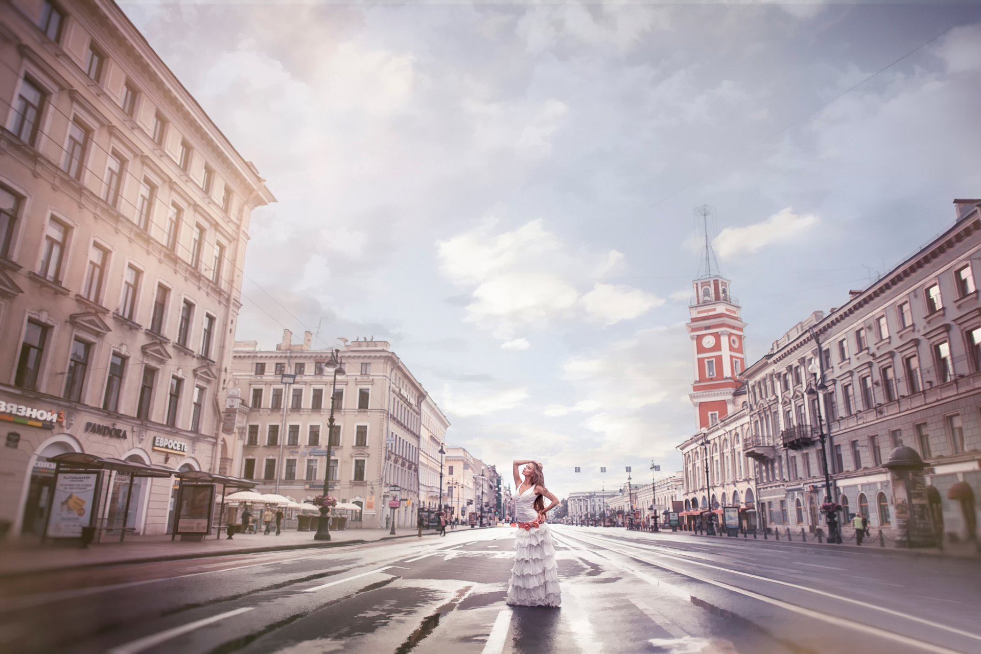La novia en la calle de la gran ciudad - fondos de pantalla