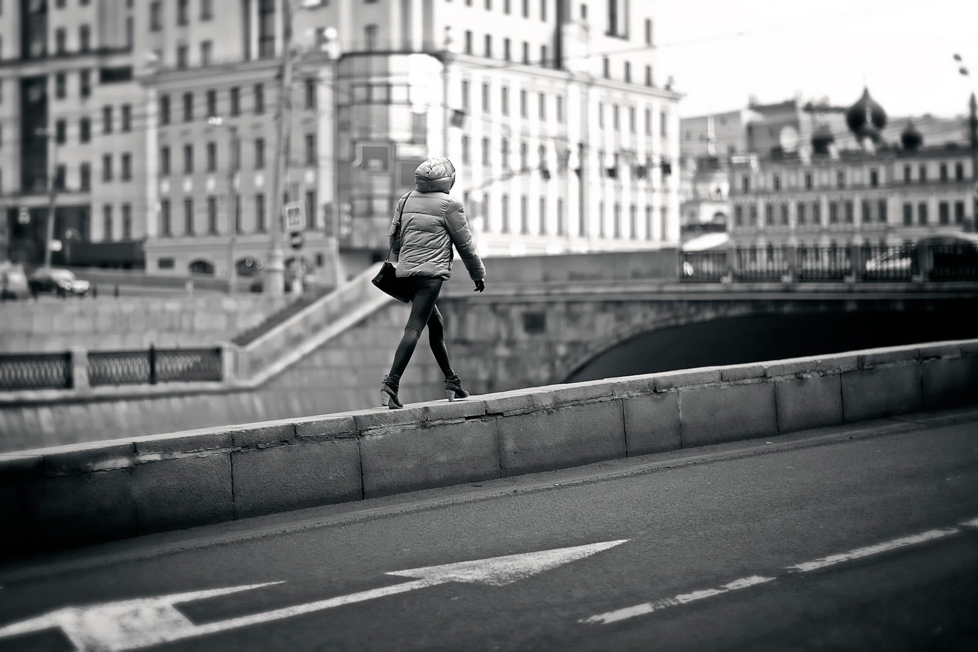 Una chica caminando por el borde de un puente - fondos de pantalla
