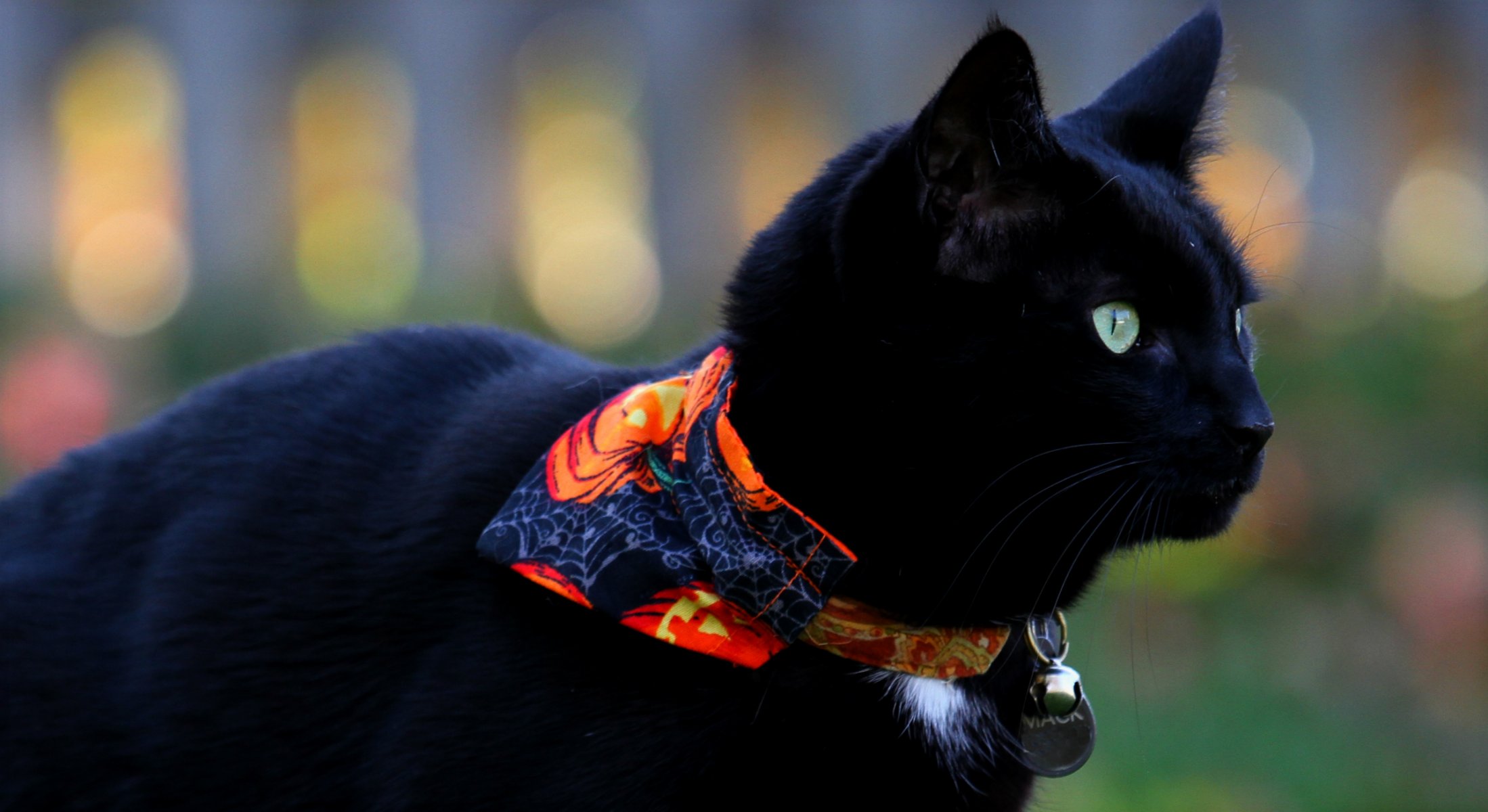 Gato negro en la naturaleza en un pañuelo - fondos de pantalla