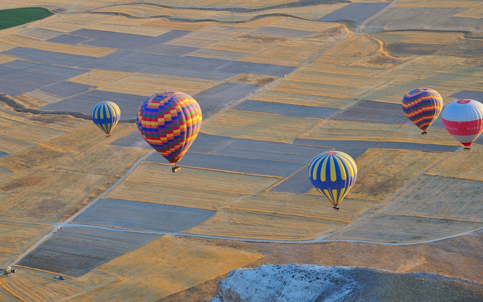 Globos en el fondo de un hermoso campo - fondos de Escritorio