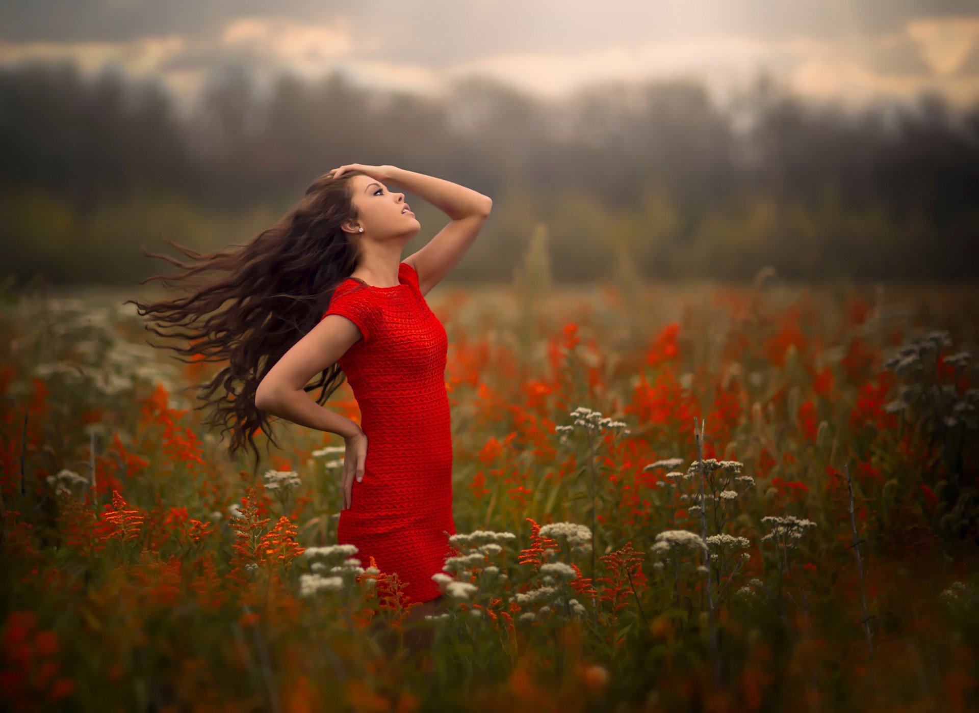 Etiquetas:brisa, chica, en rojo, viento, campo