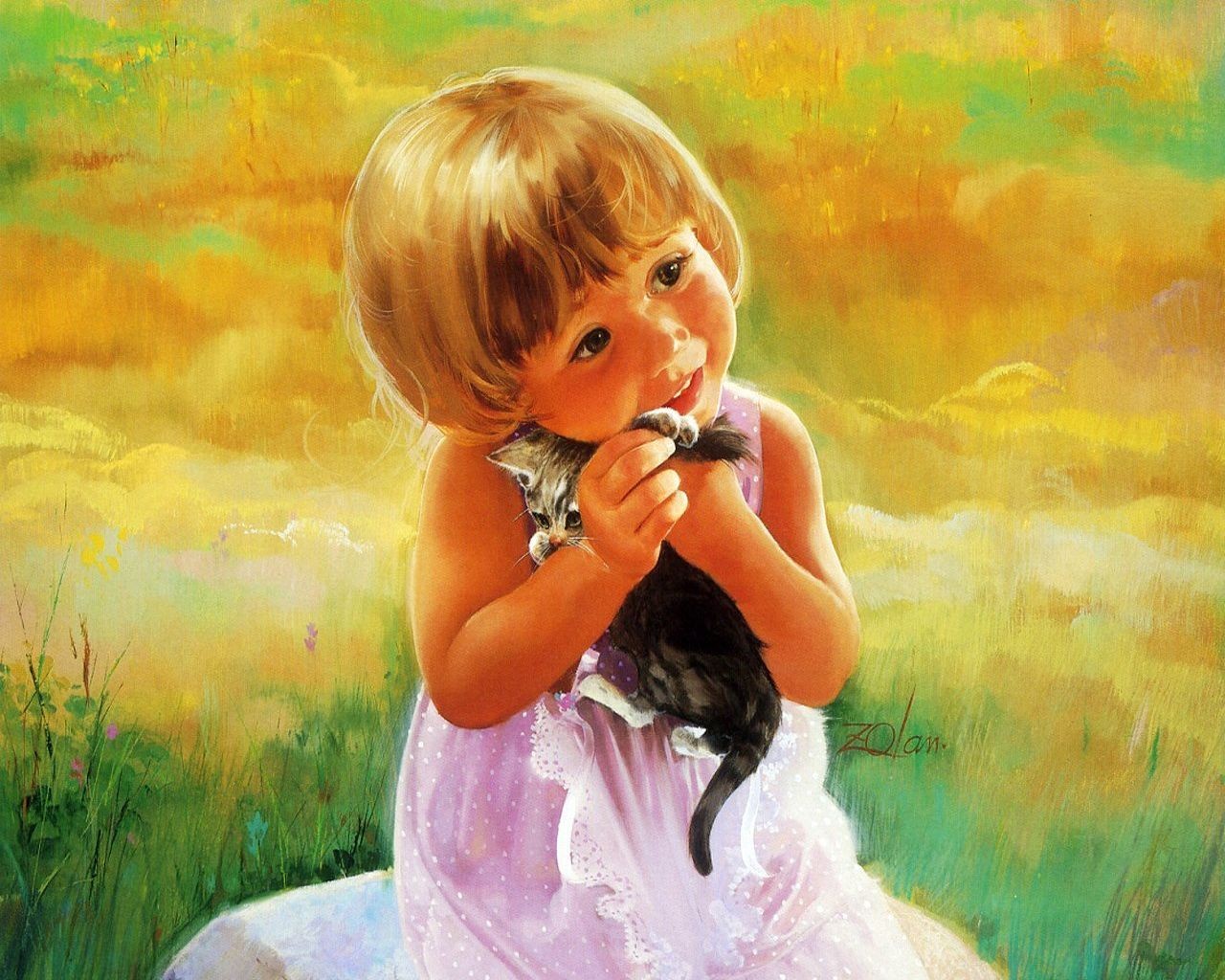 Etiquetas:niña, bebé, gatito, dibujo, pintura