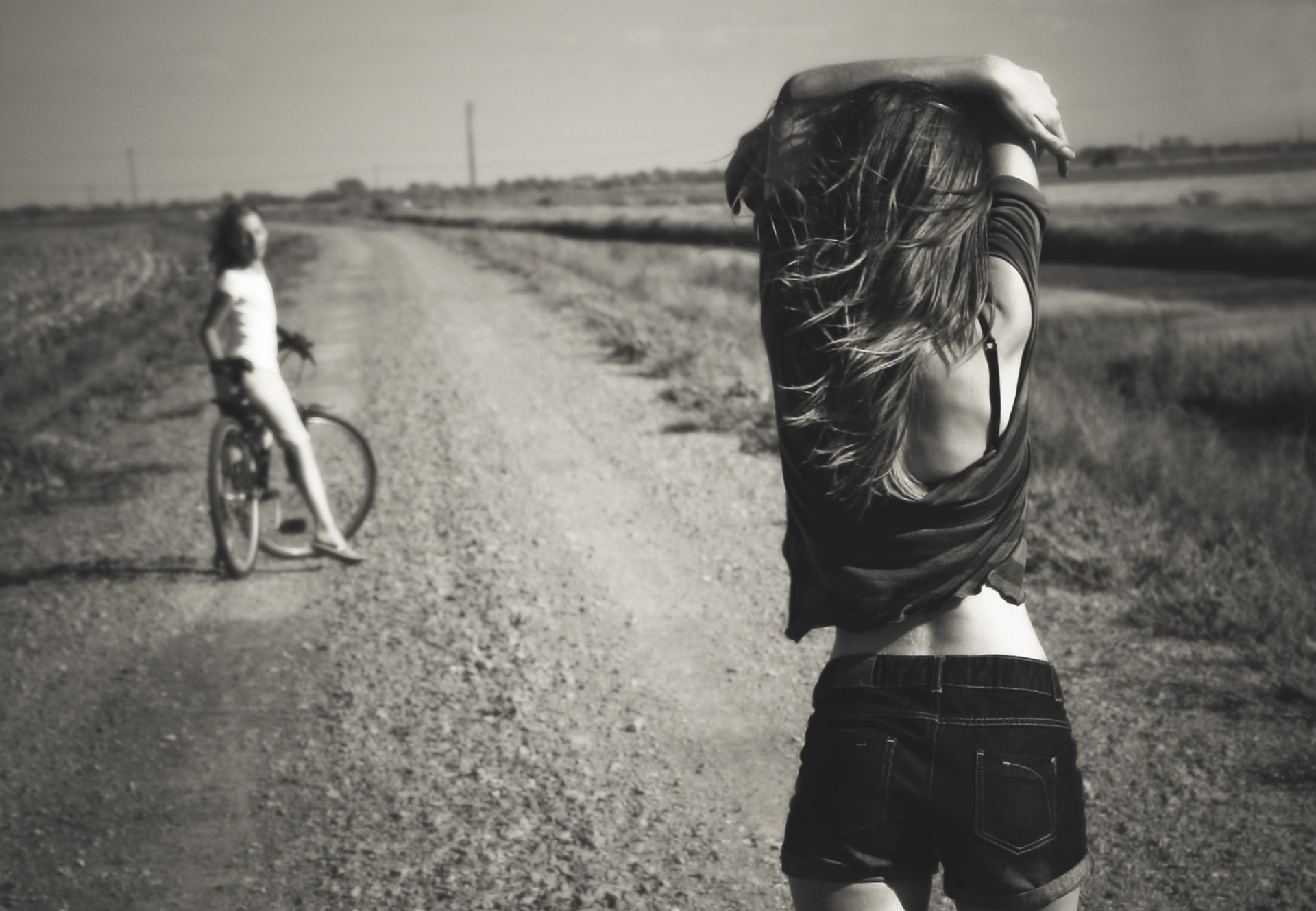 Foto en blanco y negro de una chica en verano en pantalones cortos - fondos de pantalla