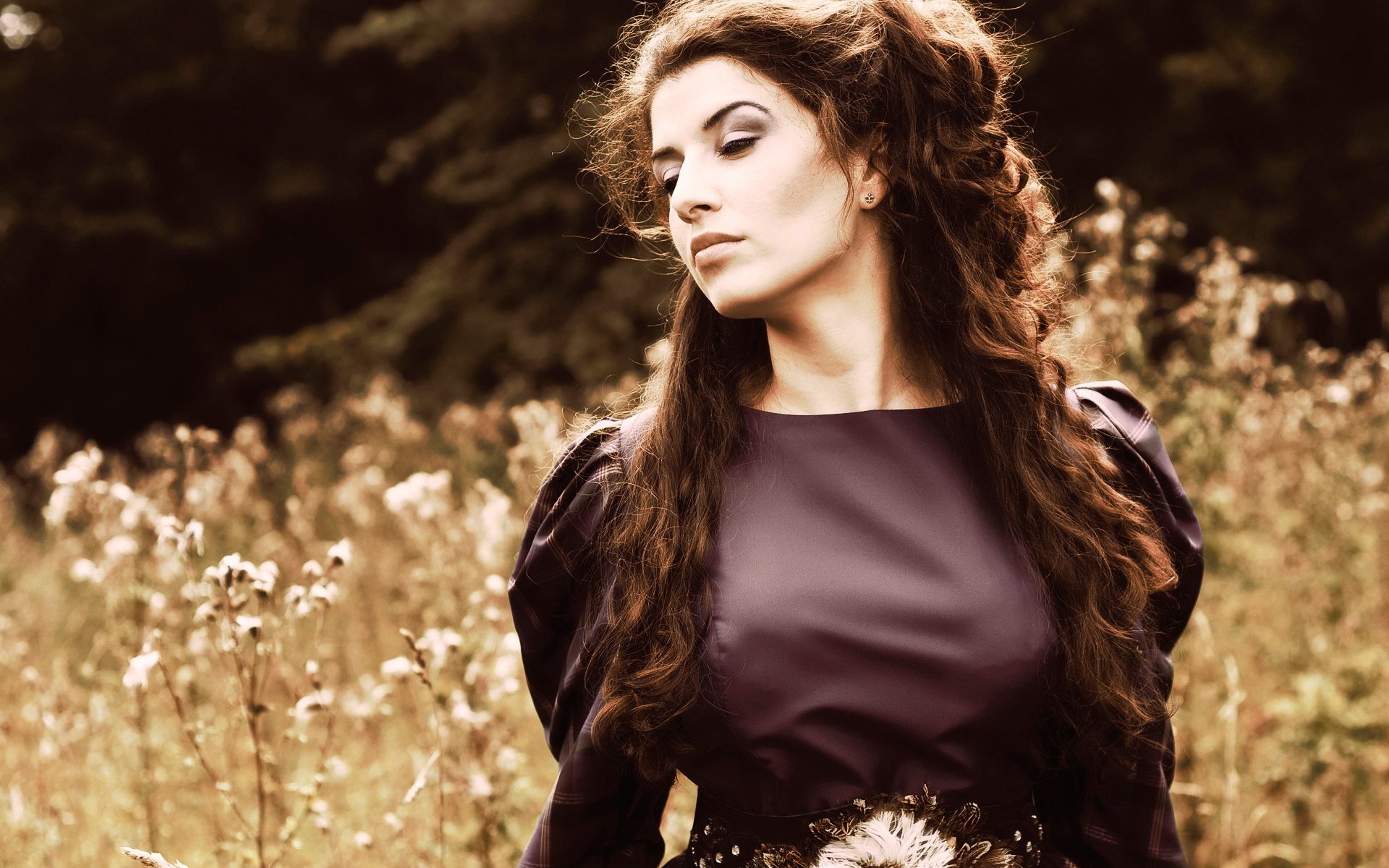 estado de ánimo melancolía sueños pensamientos naturaleza campo claro espigas chica vestido maquillaje cabello