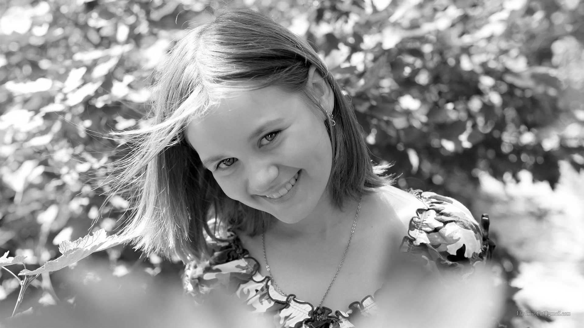 Retrato en blanco y negro de una chica sonriente - fondos de pantalla