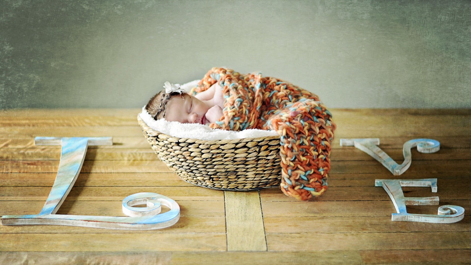 Sesión de fotos de bebé recién nacido en una cesta - fondos de pantalla