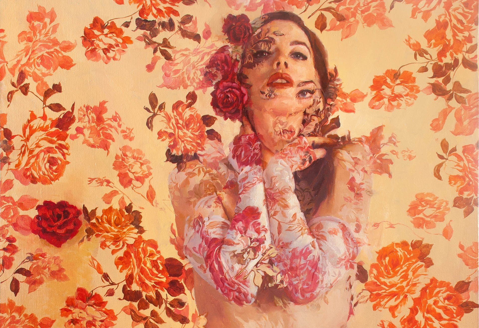 Arte abstracto de la muchacha con las flores - fondos de Escritorio