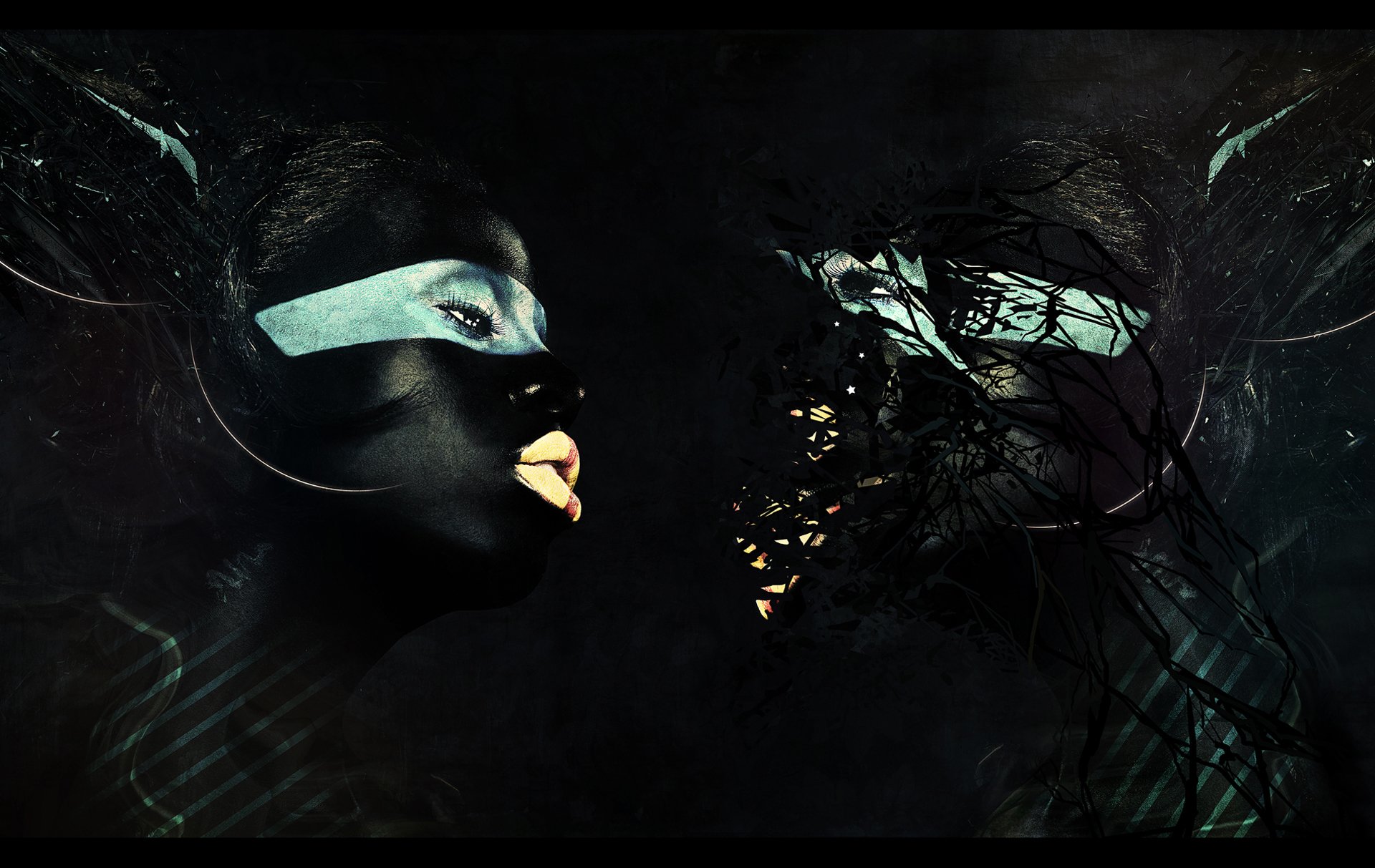 Imagen minimalista del campo nocturno, el cielo y la Luna