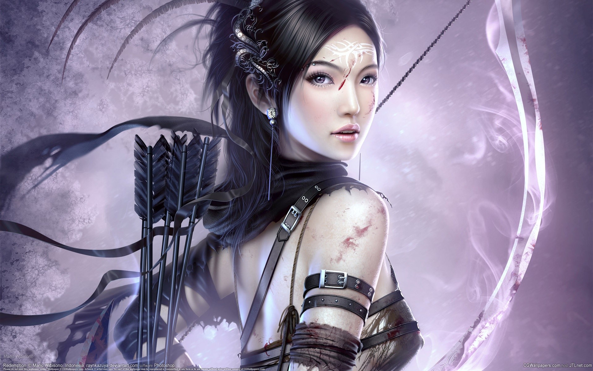 Arquera oscura. Fantasía chica con arco - fondos de pantalla