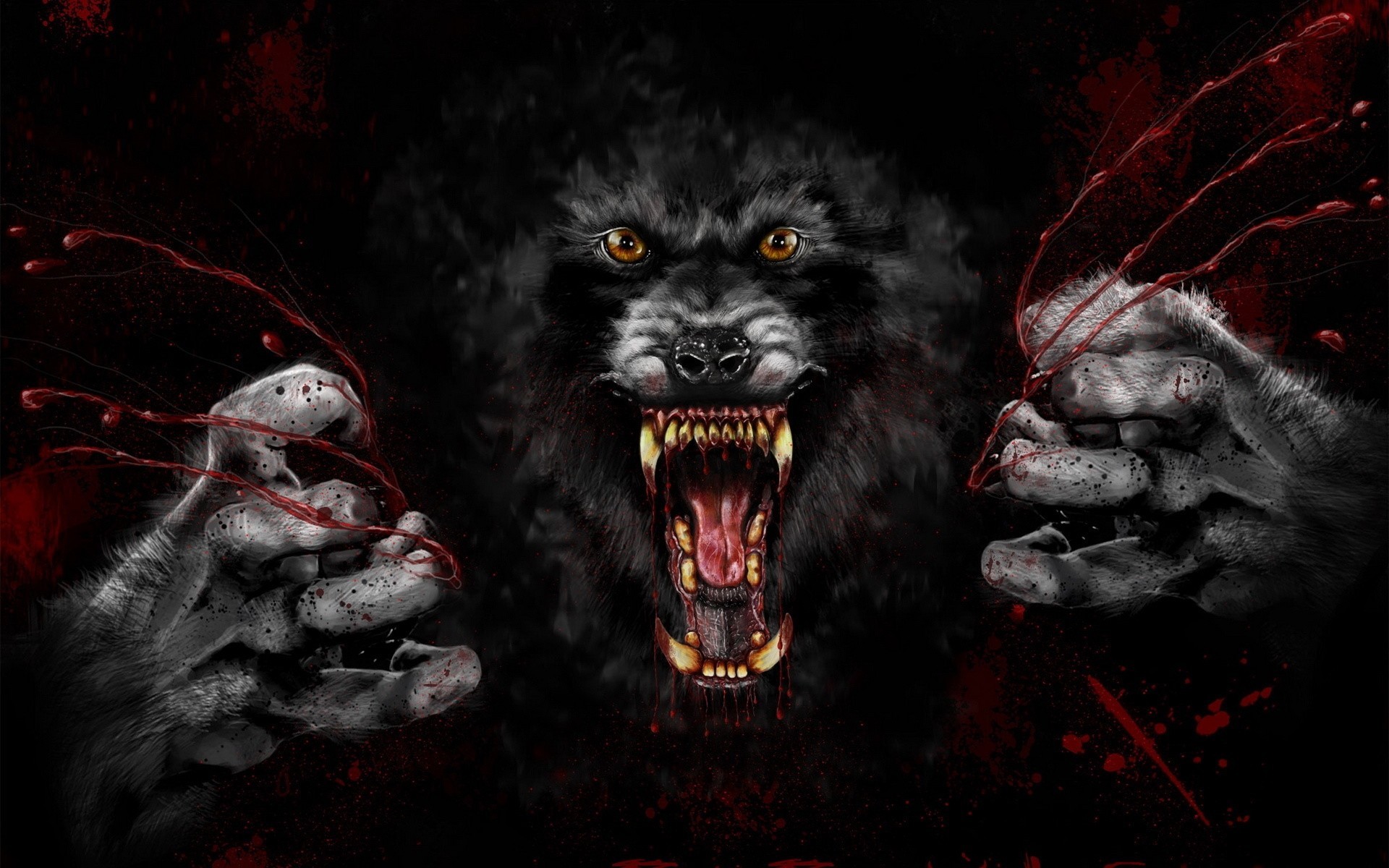 dientes boca espeluznante colmillos hombre lobo criatura sangre