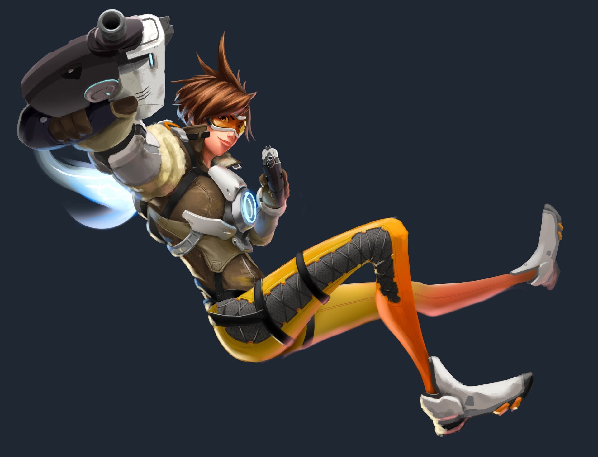 Chica con armas fantásticas sobre un fondo gris - fondos de pantalla