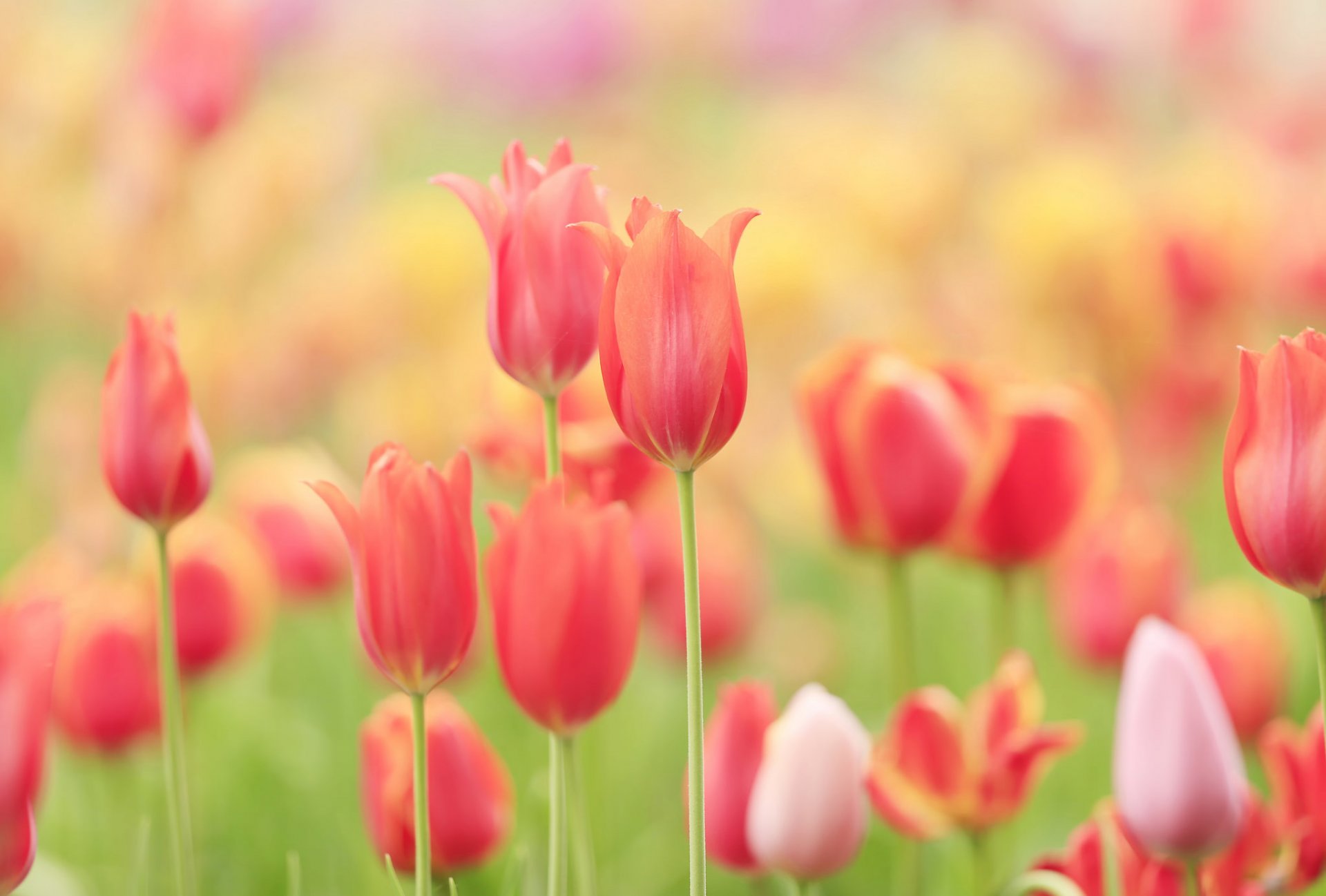 El Prado de verano está salpicado de delicados tulipanes - fondos de pantalla