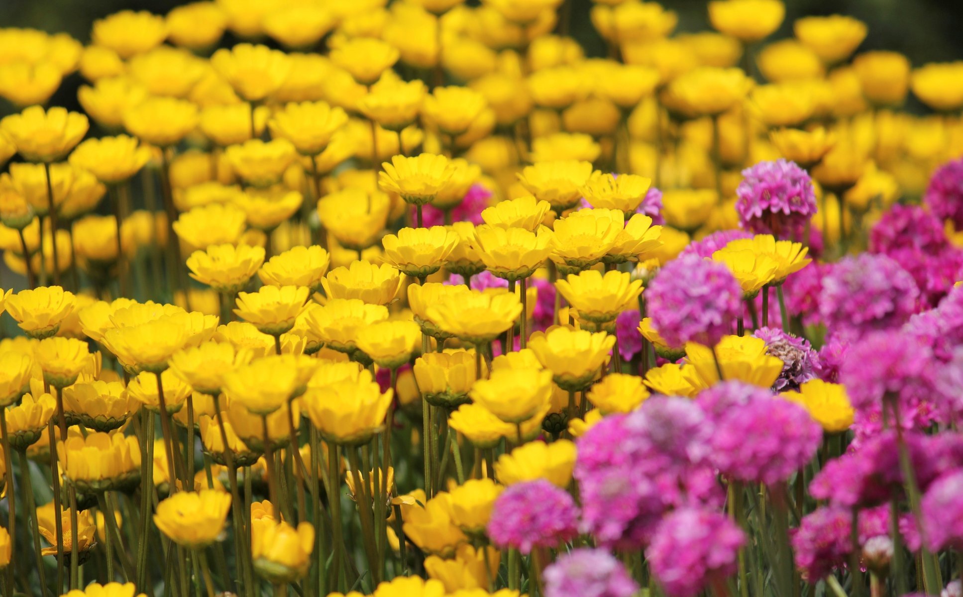 Flores amarillas y Rosadas en el campo - fondos de pantalla