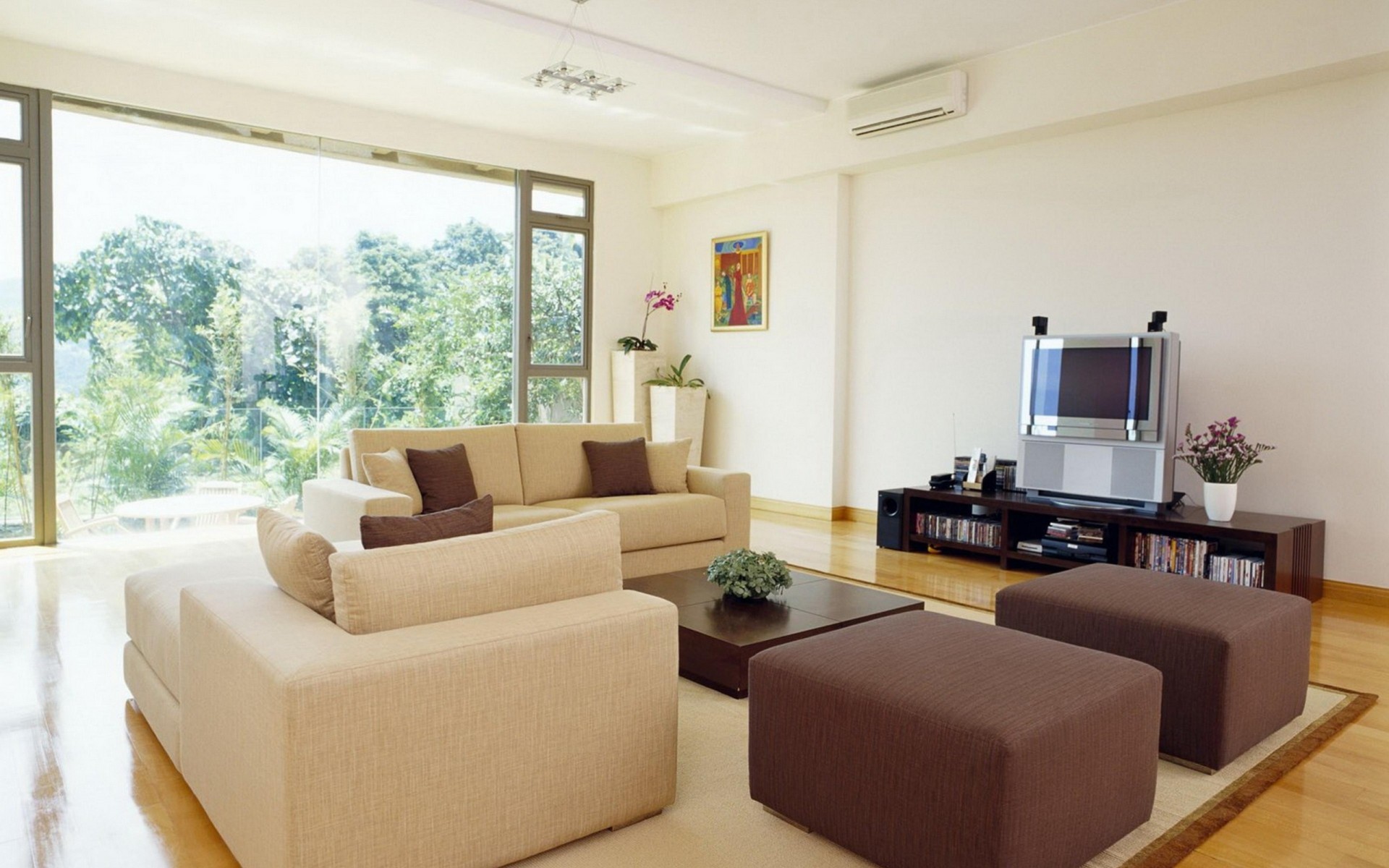 Sala de estar con sofás y TV - fondos de Escritorio