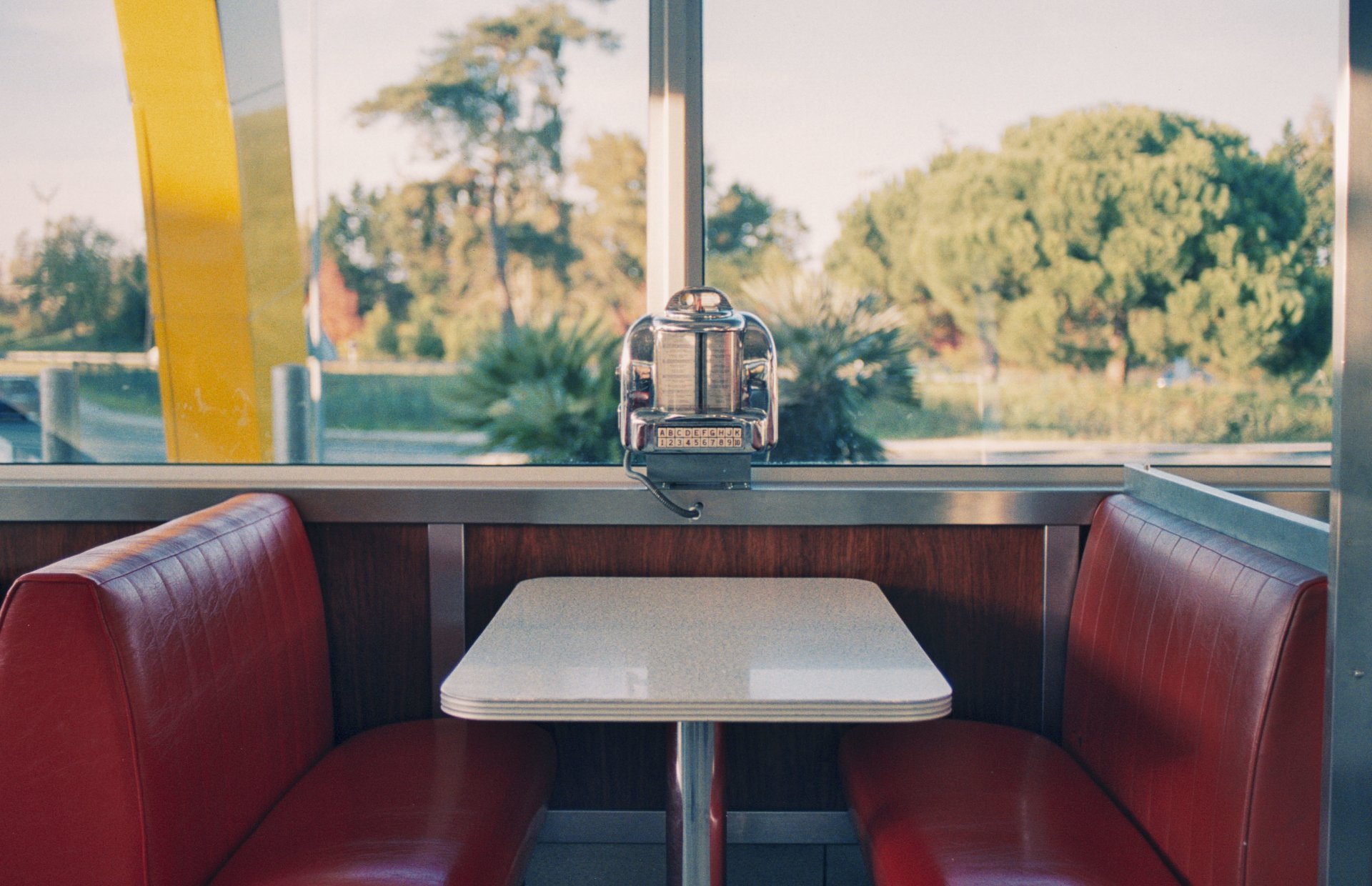 Etiquetas:restaurante, bancos, mesa, ventana, parque, árboles, sol