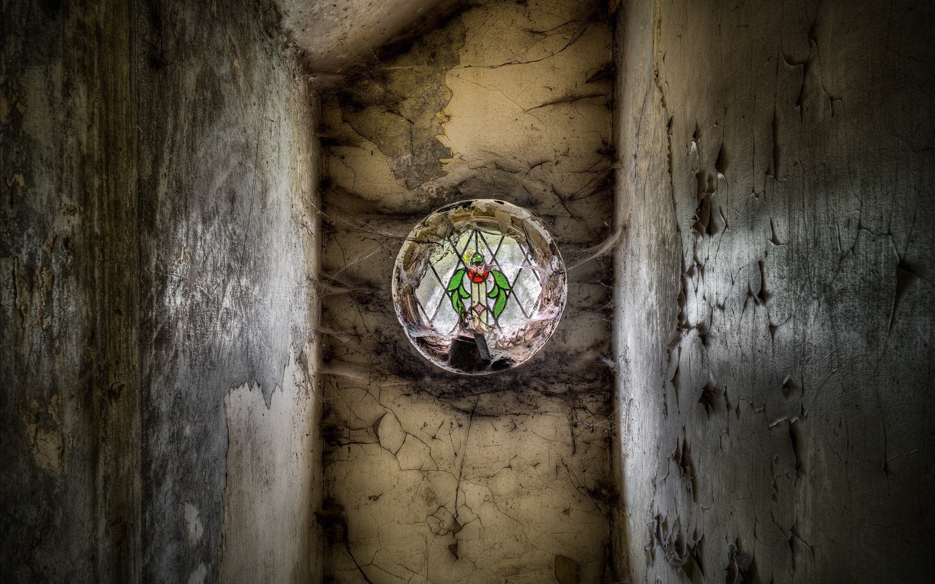 Vidrieras de colores envueltas en telarañas - fondos de pantalla