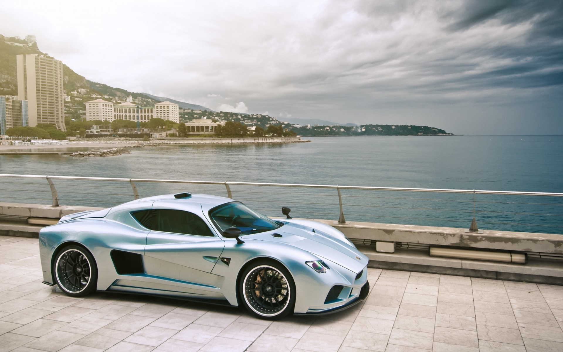 Hermoso coche deportivo en el paseo marítimo - fondos de Escritorio