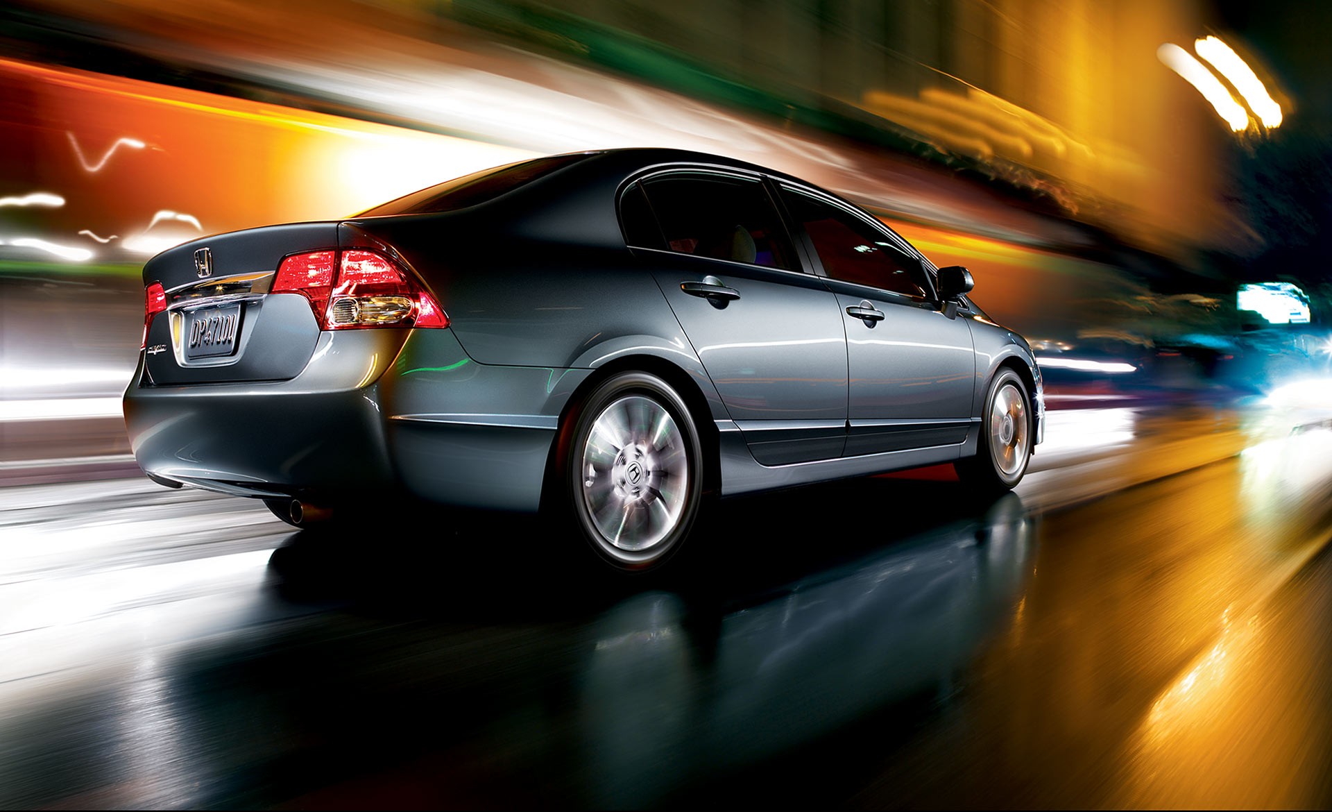Un coche oscuro recorre la ciudad nocturna - fondos de Escritorio