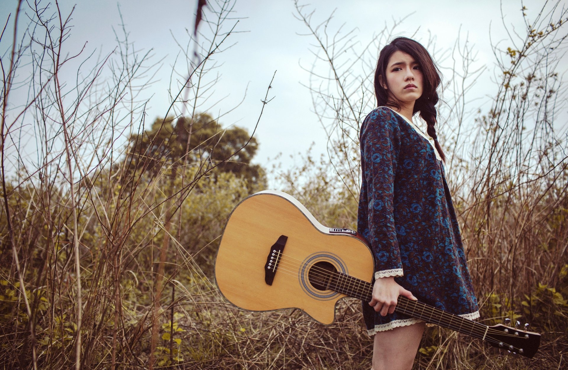 Chica con guitarra en medio de la naturaleza - fondos de Escritorio