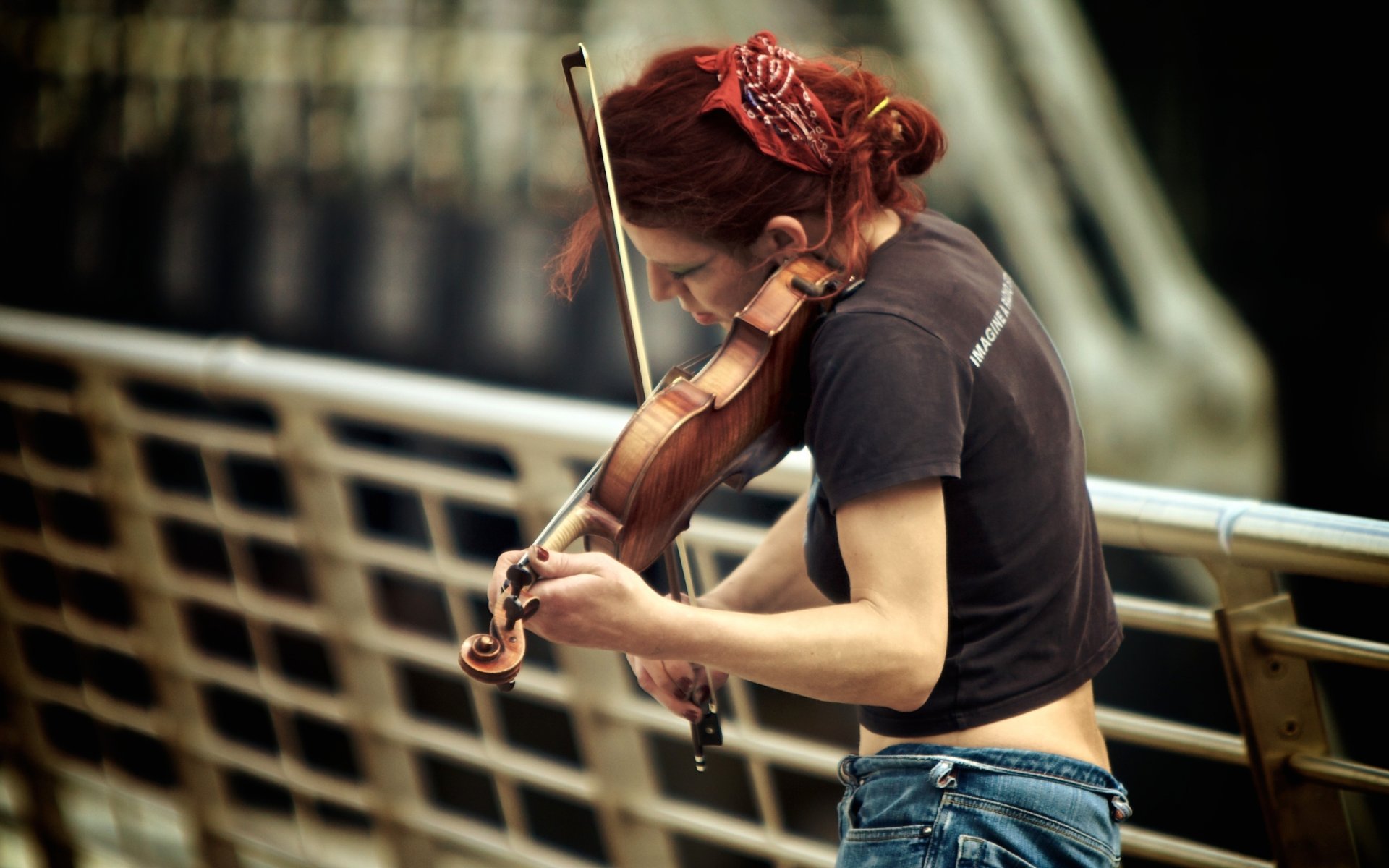Violinista pelirroja tocando el violín - fondos de Escritorio