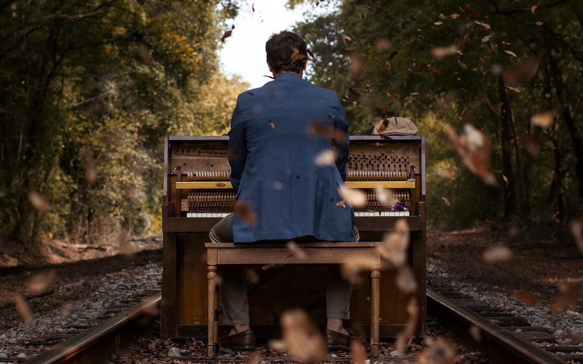 Etiquetas:hombre, ferrocarril, piano, música, hojas