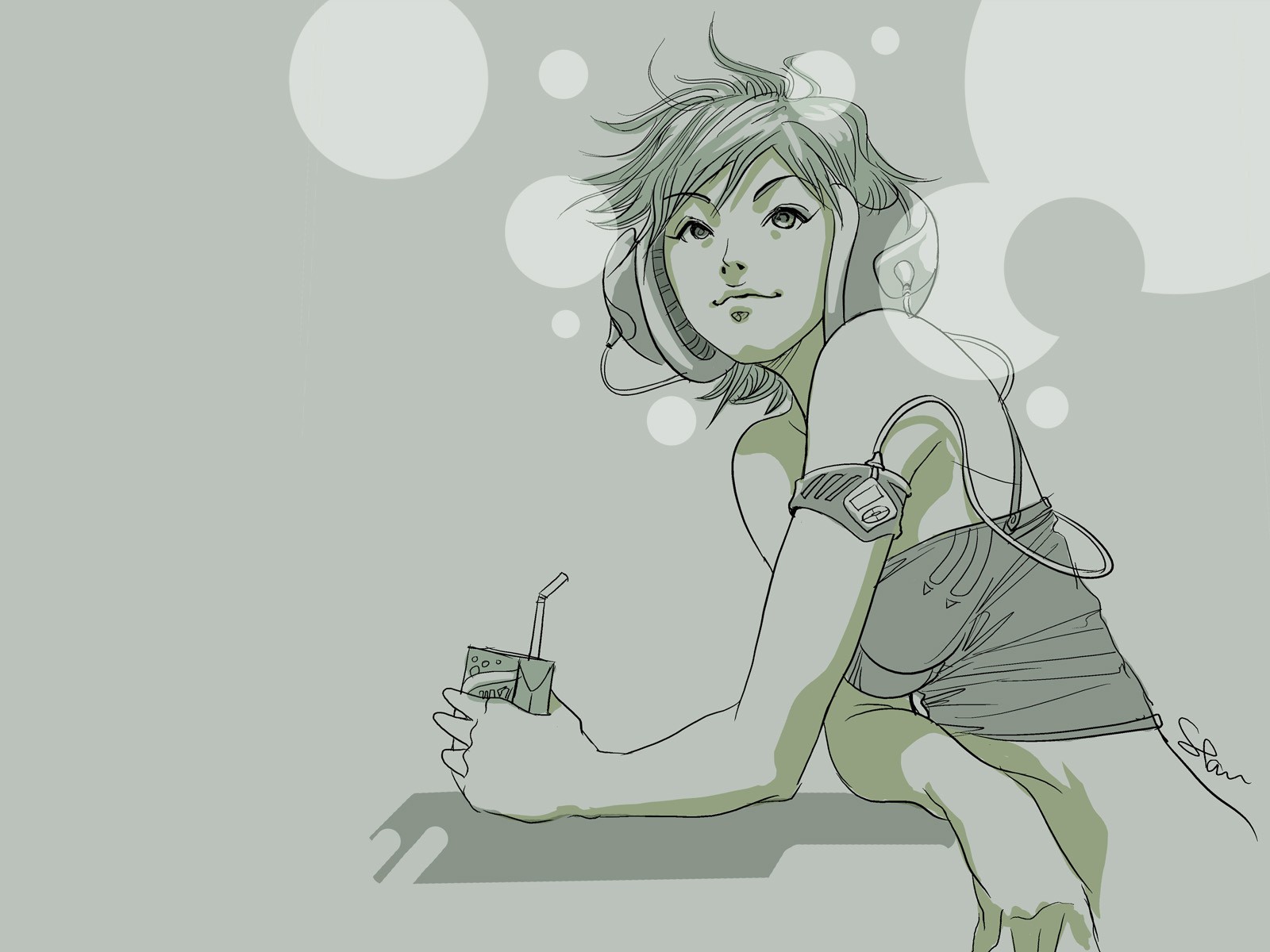 CHICA ESCUCHANDO MÚSICA Y BEBIENDO JUGO - fondos de Escritorio