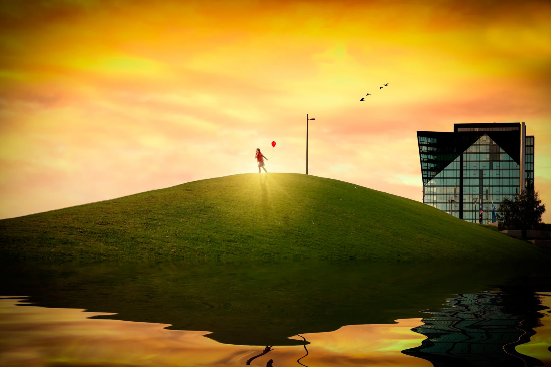 Etiquetas:niña, bola, sol, colina, casa, reflexión