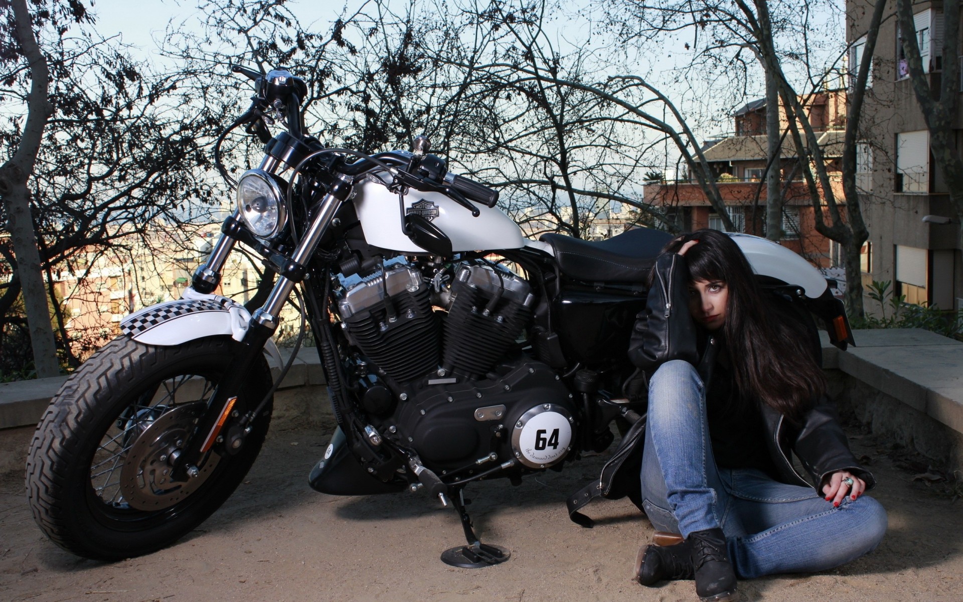 Chica ciclista en el fondo de la motocicleta - fondos de Escritorio