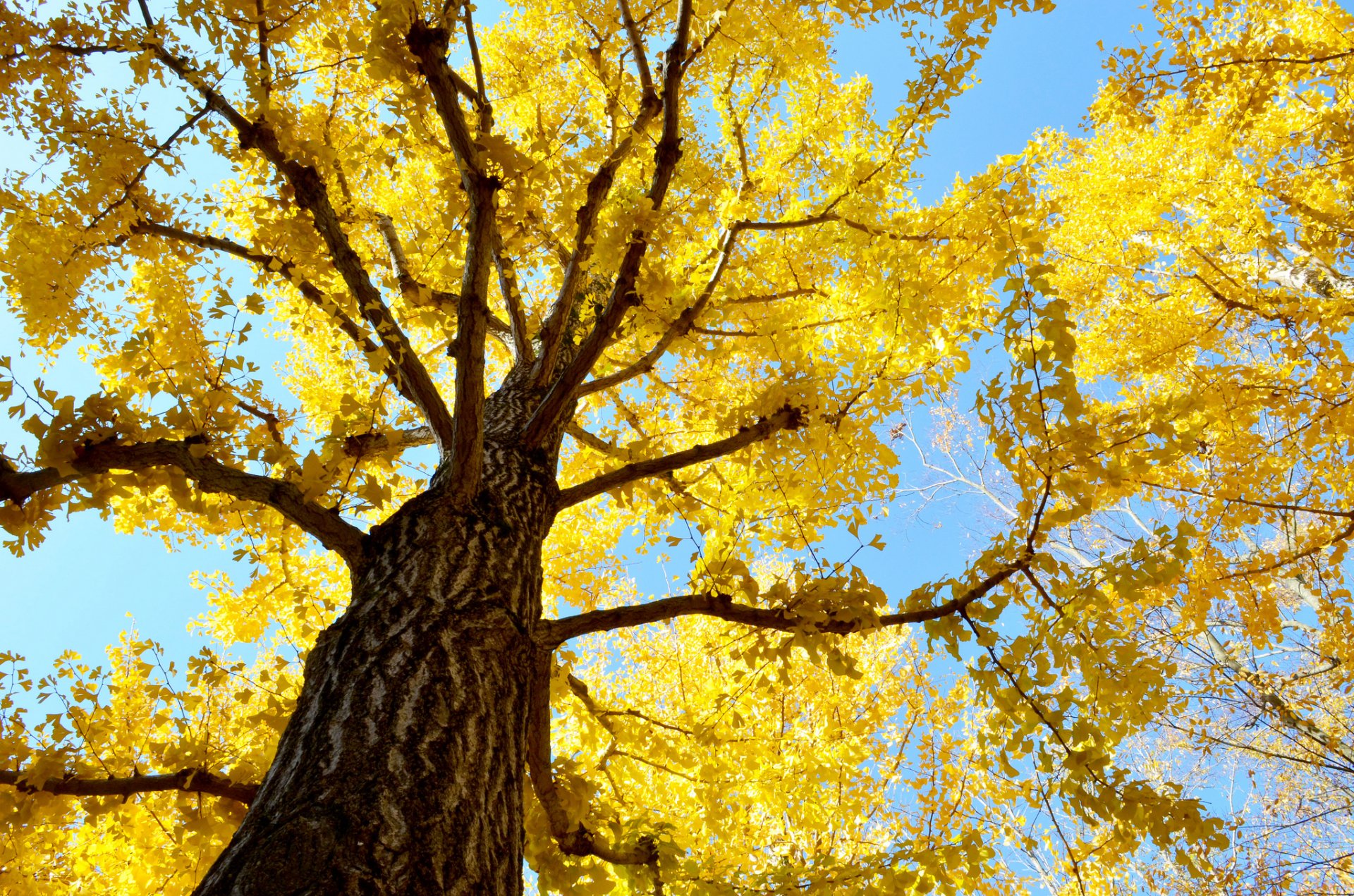 Corona de árbol de oro contra el cielo - fondos de Escritorio