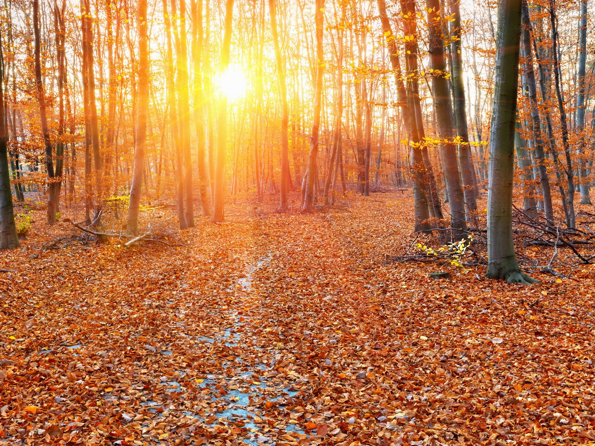 bosque otoño follaje rayos de sol árboles hojas amarillo