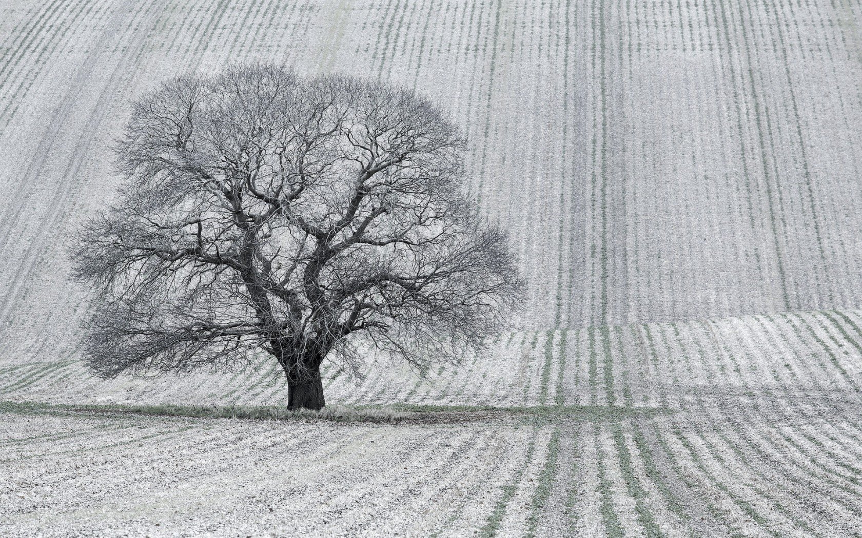 Un árbol en un campo o un paisaje en blanco y negro - fondos de Escritorio