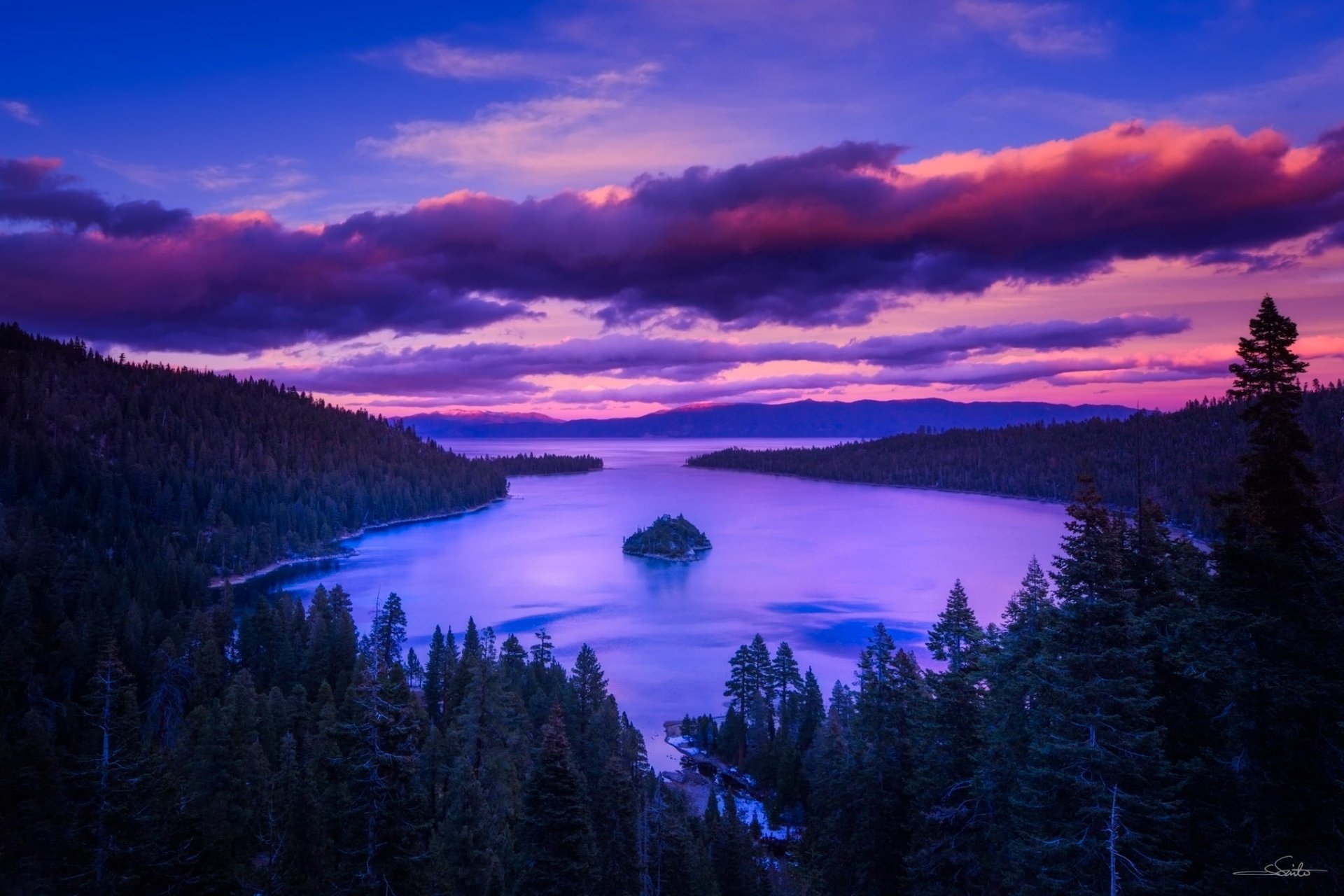 Etiquetas:montañas, bosque, lago, isla, árboles, amanecer