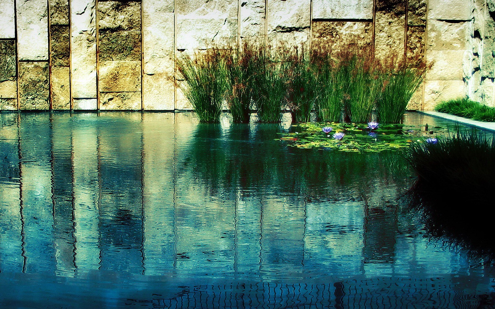 Arbustos de juncos y lirios en el lago - fondos de pantalla