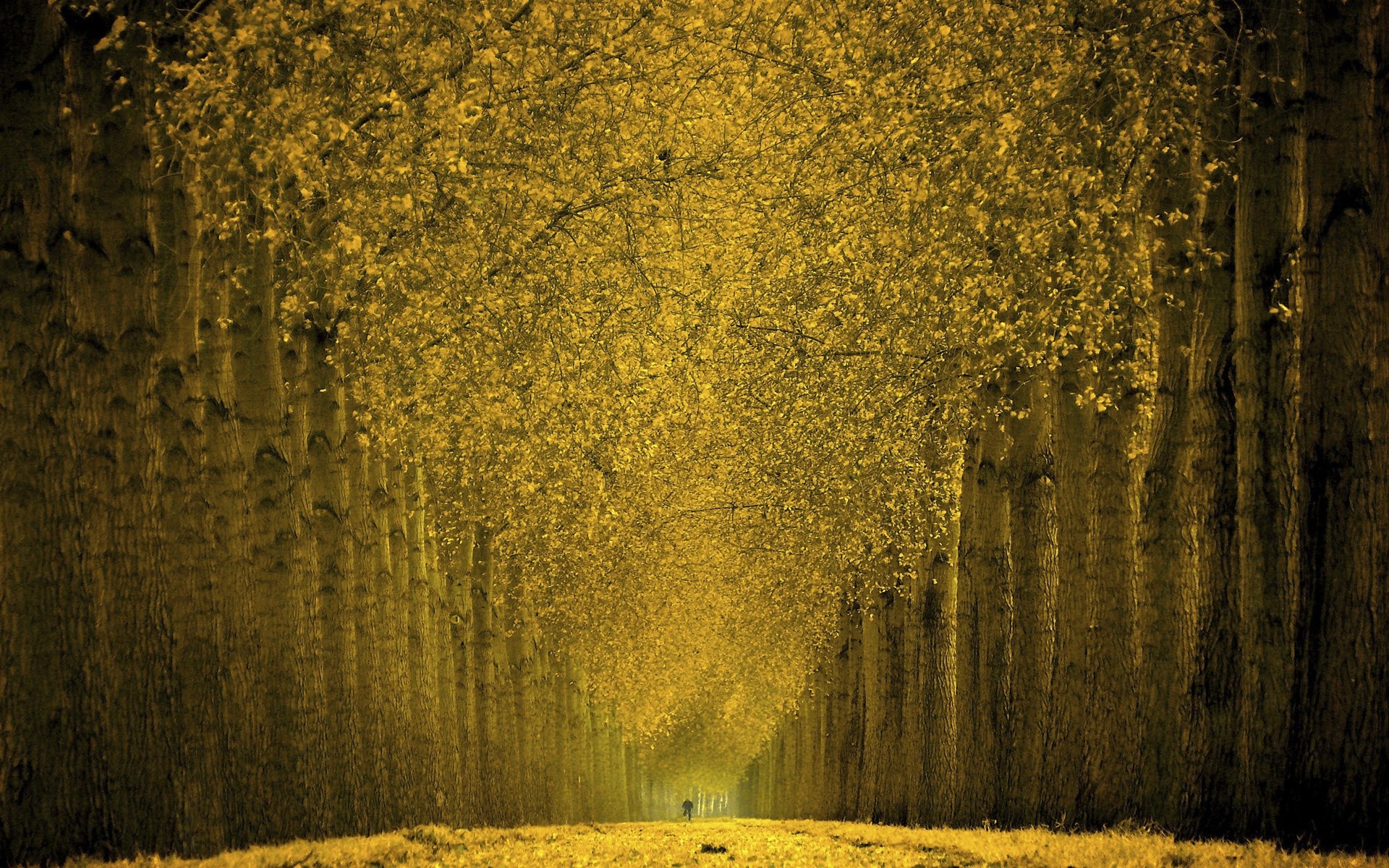 Callejón de otoño dorado en el bosque - fondos de pantalla