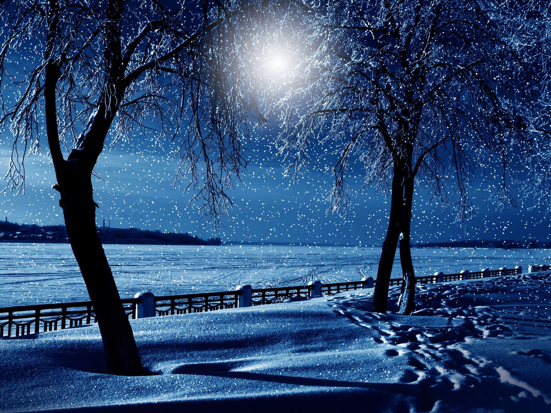 Hermoso paisaje nocturno de invierno - fondos de pantalla