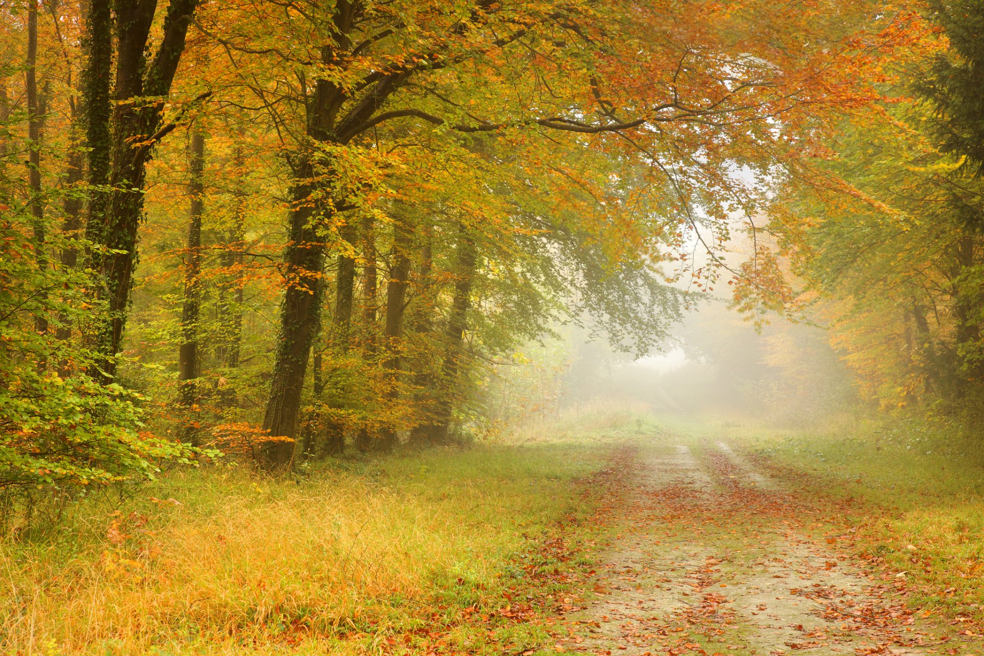 Etiquetas:otoño, bosque, hojas, árboles, carretera, niebla, paisaje