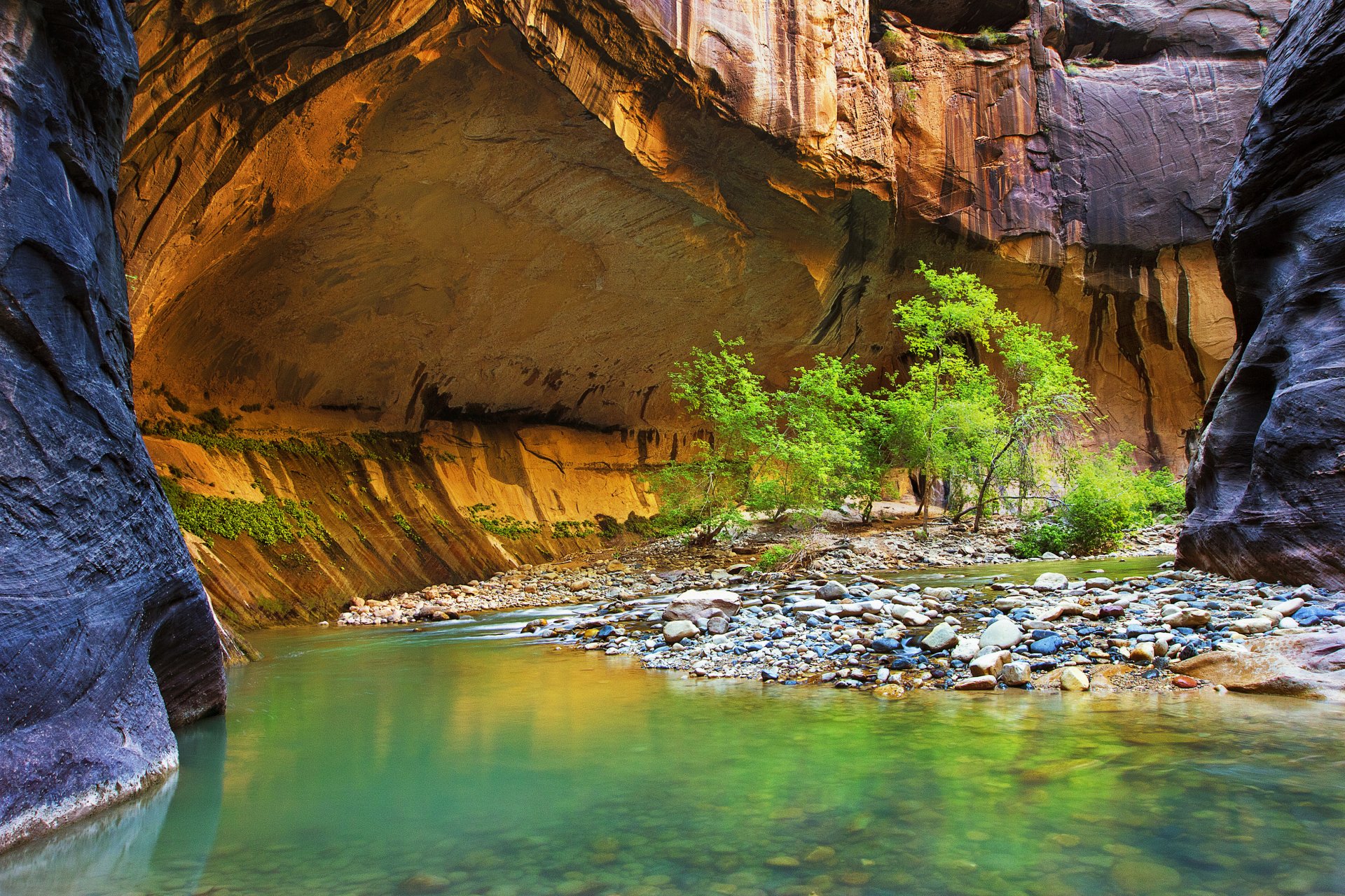 Etiquetas:río, piedras, cañón, rocas, árboles, hojas