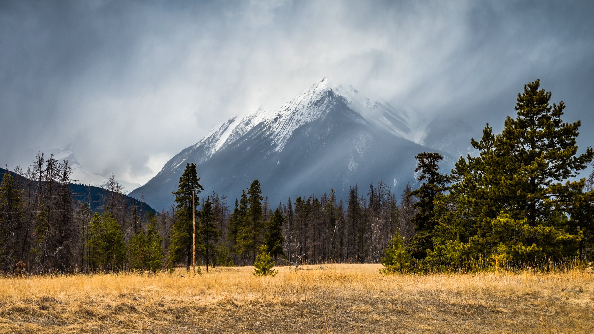 Rovnina con vistas a la cima Nevada de la montaña - fondos de pantalla
