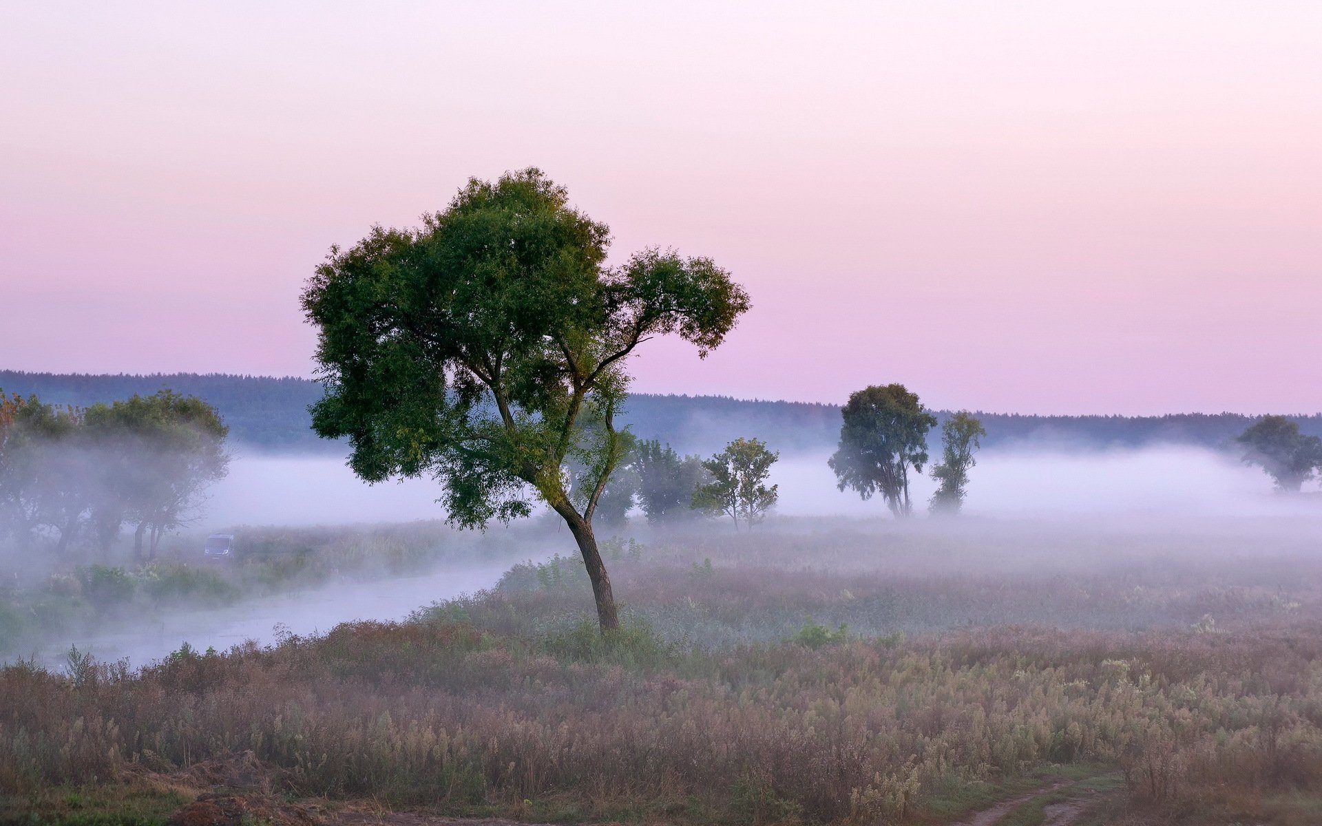 Camino brumoso en la mañana de verano - fondos de Escritorio