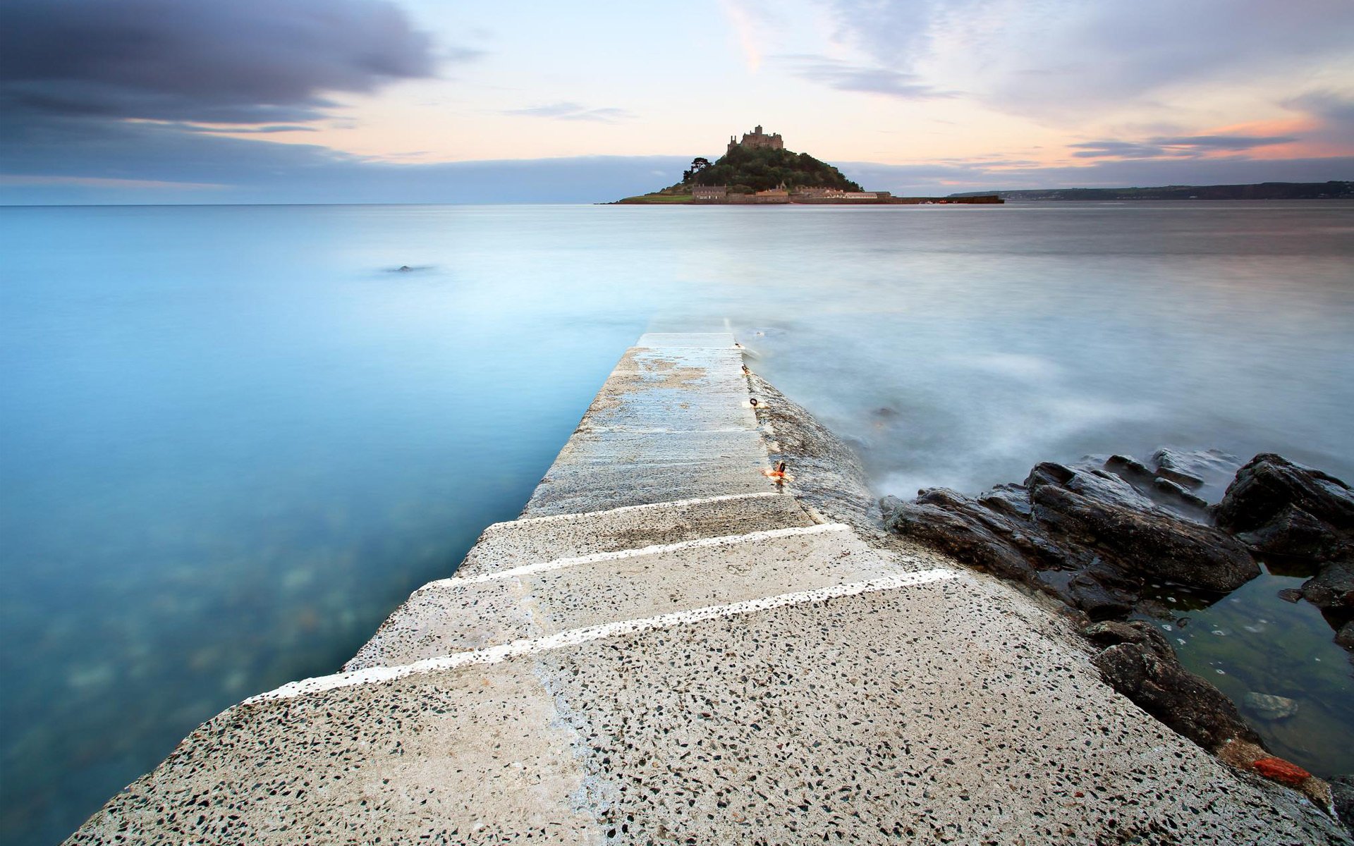 mar carretera piedra isla fortaleza ciudad nubes tarde anochecer puesta del sol escalones